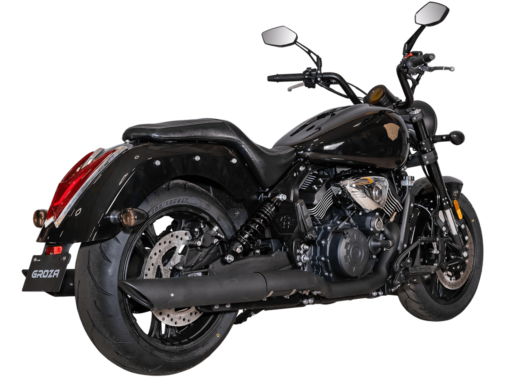 GROZA SL800 – великолепный круизёр, который подойдёт как для повседневной городской езды, так и для комфортного перемещения на длинные дистанции. Его дизайн исполнен в классическом стиле, соответствующем всем канонам данного типа мотоциклов.Двухцилиндровый V-образный двигатель объёмом 800 см3 мощностью 61 л.с. при высоких показателях динамики и отличном крутящем моменте способен разгонять аппарат до 160 км/ч. Инжекторный впрыск топлива с инжектором DELPHI увеличивает топливную экономичность, а также позволяет добиться высокой приёмистости и неприхотливости агрегата. Привод на ведущее колесо осуществляется ремнём знаменитой марки USA Gates. Жидкостная система охлаждения не допустит перегрева мотора даже при самом агрессивном вождении.Аппарат имеет 6-ступенчатую механическую коробку передач с классической схемой “1-N-2-3-4-5-6”. На мотоцикл установлены литые алюминиевые диски диаметром 17 дюймов. Ширина передней покрышки – 140 мм, задней – 200 мм. С неровностями дороги эффективно справляются телескопическая вилка перевёрнутого типа спереди и маятник с двумя газонаполненными амортизаторами сзади. Подвеска имеет 7 ступеней регулировки, что обеспечивает лёгкую перестройку на различные режимы езды. Для всего класса круизёров такая опция – большая редкость. Эффективное и безопасное замедление с любых скоростей обеспечивают гидравлические дисковые тормоза спереди и сзади от компании NISSIN.Аппарат оснащён своеобразной и очень привлекательной по дизайну светодиодной оптикой, а также бортовым компьютером и ярким и информативным дисплеем.Мотоцикл сочетает в себе отличные технические характеристики, богатое оснащение, комфорт и надёжность, что позволяет вам ощутить настоящую свободу на любой дороге