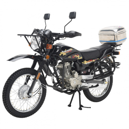 Regulmoto SK200-22 – достойный представитель класса классических дорожных мотоциклов. Эта модель может быть использована в качестве надежного и экономичного средства передвижения по дорогам общего пользования и легкому бездорожью для решения широкого круга эксплуатационных задач.Данный мотоцикл разработан специалистами известной мотоциклетной компании SENKE и собирается на ее производственных мощностях. Благодаря высоким стандартам контроля качества продукция компании пользуется заслуженным признанием экспертов мотоиндустрии и поклонников двухколесного транспорта во многих странах мира.В раме Regulmoto SK200-22 устанавливается проверенный временем 4-тактный одноцилиндровый 200-«кубовый» двигатель с 5-ступенчатой коробкой передач и электростартером, работающий в паре с карбюратором. Средний расход топлива составляет меньше трех литров на сто километров пути. Подвеска представлена телескопической вилкой спереди и двумя амортизаторами сзади. Тормозная система мотоцикла базируется на классических барабанных тормозах в ступицах 18-дюйомвых колес.Мотоцикл в стоковой комплектации оснащается дугами безопасности, кожухом защиты цепи, защитой рук, защитой двигателя, центральной и боковой подножками. Откидные площадки под боковые кофры, передний и задний багажник с установленным на нем кофром позволят перевозить массу полезного груза – заявленная производителем грузоподъемность составляет 180 кг. Благодаря значительному клиренсу, высокому расположению крыльев, комплектации кофром и багажниками мотоцикл Regulmoto SK200-22 способен стать оптимальным выбором для поездок в лес, на рыбалку или охоту.