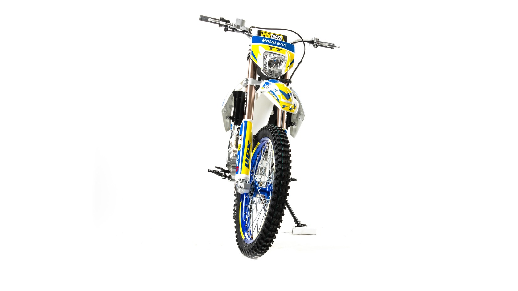 MotoLand TT 250 Новинка весны 2020 года.Надёжная техника из самых популярных компонентов оснащена Двигателем ZONGSHEN 172FMM с кикстартером и электростартером Мощностью 21 Л.С. на двигателе установлен Карбюратор NIBBI PE28.Это полноразмерный кроссовый мотоцикл его база по осям составляет 1430 мм., и габаритами 2180х800х1300 мм. Высота по седлу составляет 950 мм., что по сравнению с Моделью XT 250 ST 21/19 ниже порядка 20 мм. Что позволяет комфортно себя чувствовать райдерам среднего роста.За счет сбалансированной базы мотоцикл имеет отличную управляемость, а конструкция рамы и особенности настройки подвески GPX способствуют максимальному поглощению неровностей дорожного покрытия, а так же усиленная прогрессия на игольчатых подшипниках.Алюминиевые обода c антибуксаторами, усиленными спицами и ступицами CNC. На кроссовой резине Yuanxing 80/100-21 / 100/90-18На мотоцикле установлена обновлённая тормозная система аналог «brembo» с медными колодками , что обеспечивает отличные тормозные характеристики. Особенностью заднего тормоза является, лапка верхнего расположения с эксцентриковой регулировкой.Выпускной патрубок с резонатором Power Bomb имеет крепления на пружинах для снижения вибрации. Глушитель с уникальным дизайном прямоточного типа, полностью алюминиевый для облегчения веса.