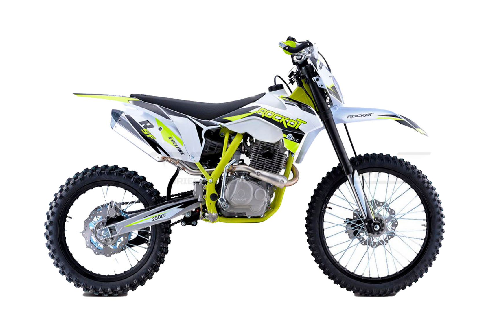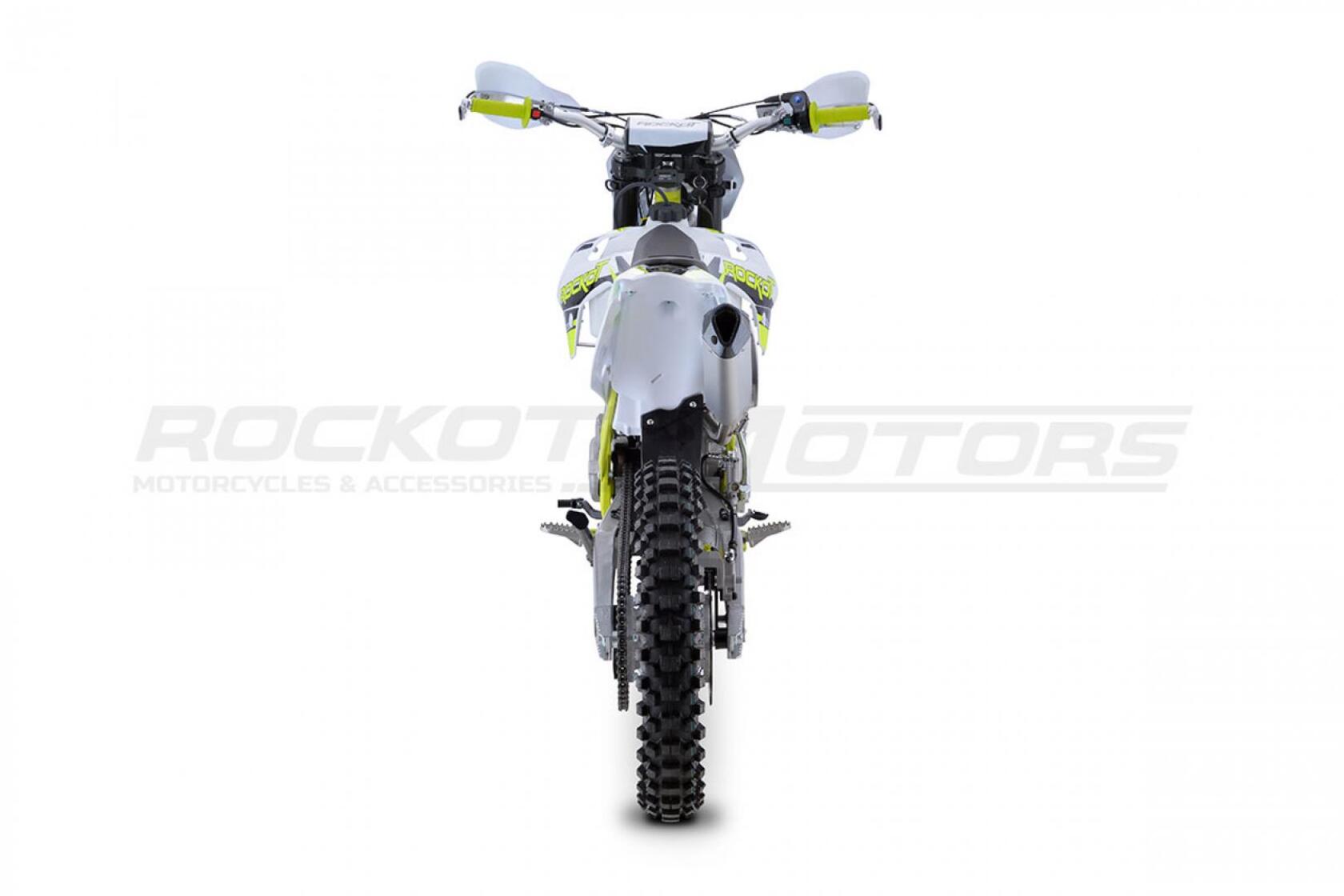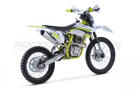 Новинка 2021 года, . Обладают энергоемкой подвеской, передняя вилка имеет возможность регулировки, по скорости сжатия и отбоя. Задний амортизатор с прогрессией, а также с возможностью регулировки. Данный мотоцикл подойдет как новичкам, так и тем кто захотел пересесть с питбайка на более кубатурную технику. Двигатель воздушного охлаждения в паре с карбюратором NIBBI PE 30 выдает 21 л. с., которые позволяют с легкостью брать любые подъемы, преодолевать броды, а так же перескакивать препятствия. На мотоцикле ROCKOT Вы сможете познать и почувствовать прекрасный мир эндуро.