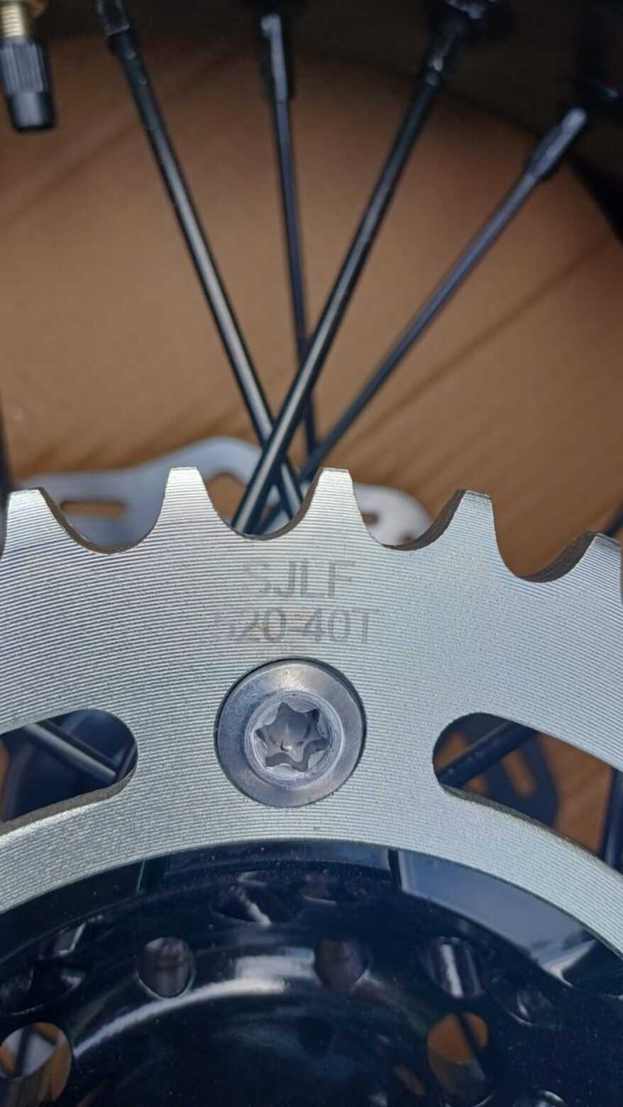 • Задний диск с шиной 150/70-17, ось 25 мм, тормозной диск 220 мм, звезда 520-40T, ширина ступицы 167 мм.