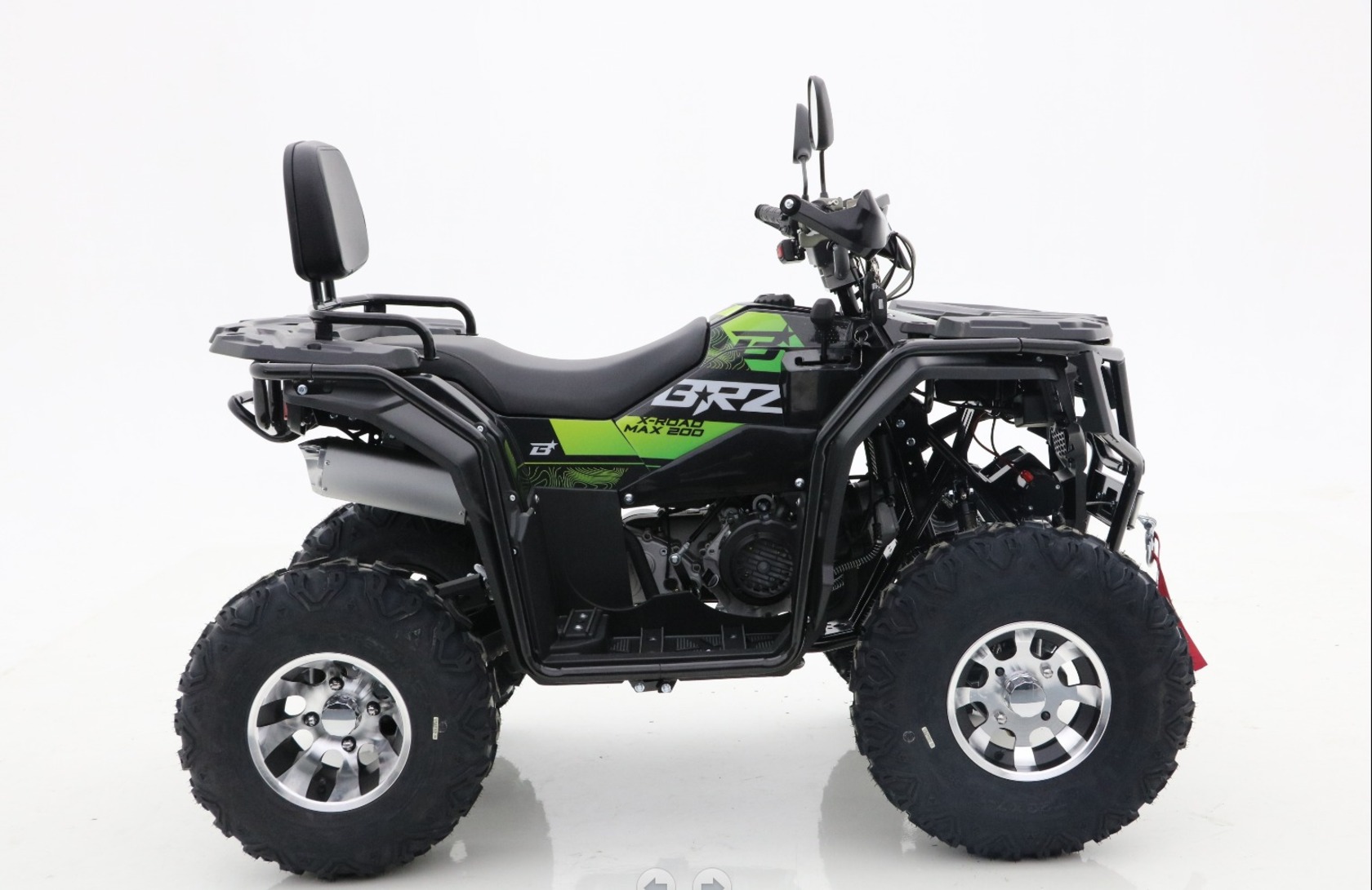 Квадроцикл BRZ X-Road MAX 200 Green — современный утилитарный квадроцикл со спортивным характером. Квадроцикл обладает всем необходимым для увлекательных путешествий и активного отдыха: двухместное сиденье с удобной спинкой пассажира, крепкие багажники спереди и сзади, зеркала, защита рук, фаркоп, лебедка, светодиодная оптика + светодиодная «люстра», LCD-приборная панель — невероятный набор опций для вашего комфорта. Литые диски и стремительный спортивный дизайн придают квадроциклу BRZ X-Road MAX 200 Green невероятный стиль. Хотите получить от 200-ки по максимуму — тогда BRZ X-Road MAX 200 Green это ваш выбор!