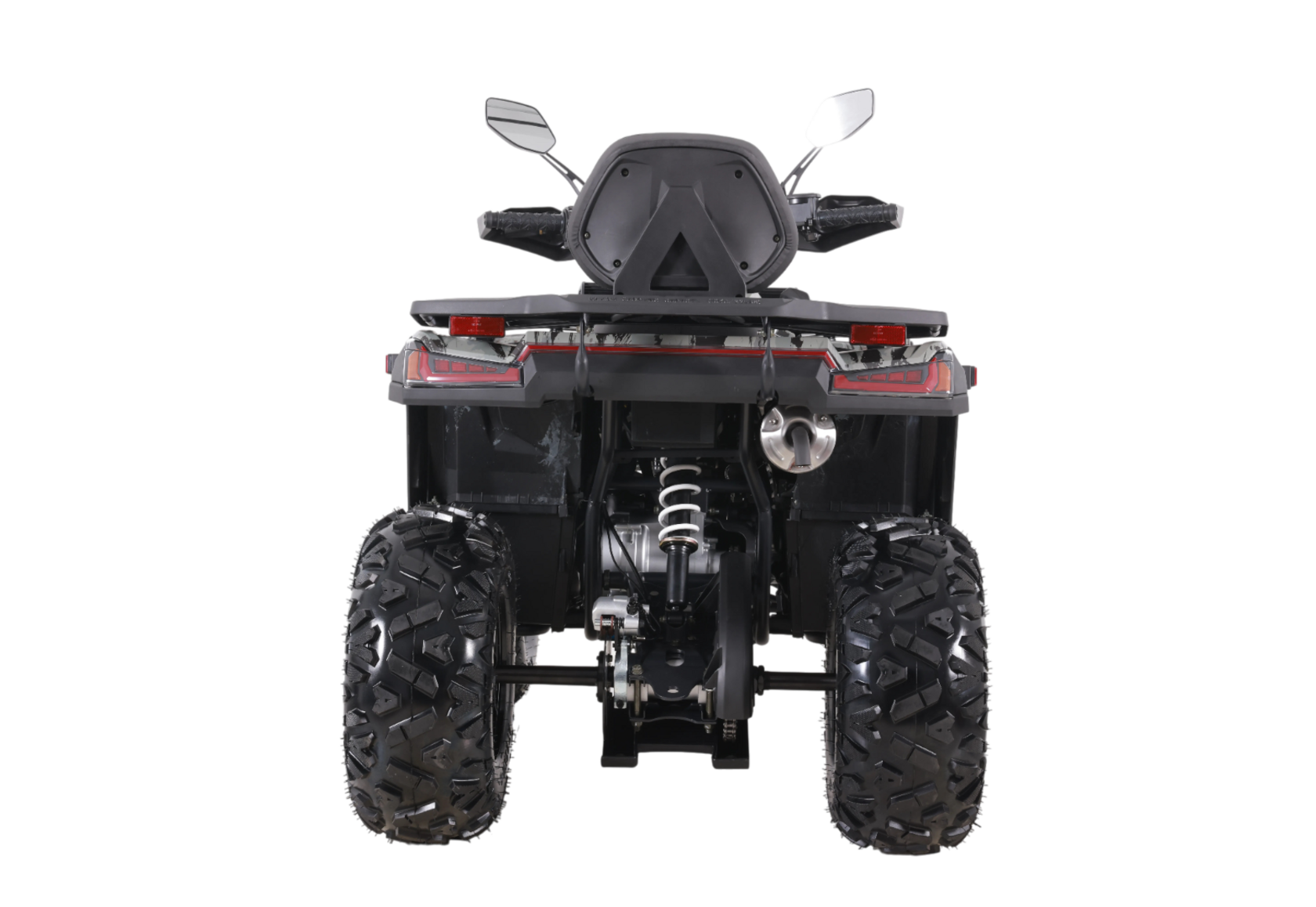 Передняя маятниковая (рычажная) подвеска обеспечивает отличную управляемость и комфорт во время движения по неровной местности. С дорожным просветом в 150 мм и высотой по сидению 800 мм, квадроцикл подходит для пользователей ростом от 150 см и выше, обеспечивая удобство и безопасность.