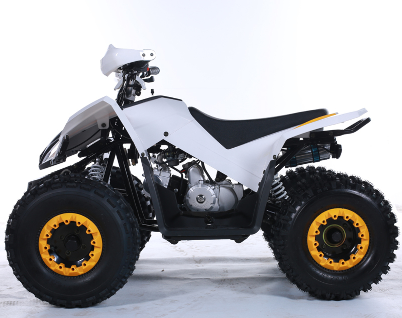 Подростковый бензиновый квадроцикл TAO MOTOR COYOTE 125, мощностью 7 л.с. с автоматической трансмиссией, светодиодной оптикой и электростартером Хотите порадовать ребенка ? Квадроцикл Motoland Coyote 125 - идеальное средство. Красивый дизайн с LED-оптикой, резвый двигатель, панель приборов, чека безопасности, мощный передний бампер и крутые внедорожные колеса. Очень простое и легкое управление. Скоростной режим может контролироваться родительским брелком. Подойдет для управления детям от 5 до 11 лет.