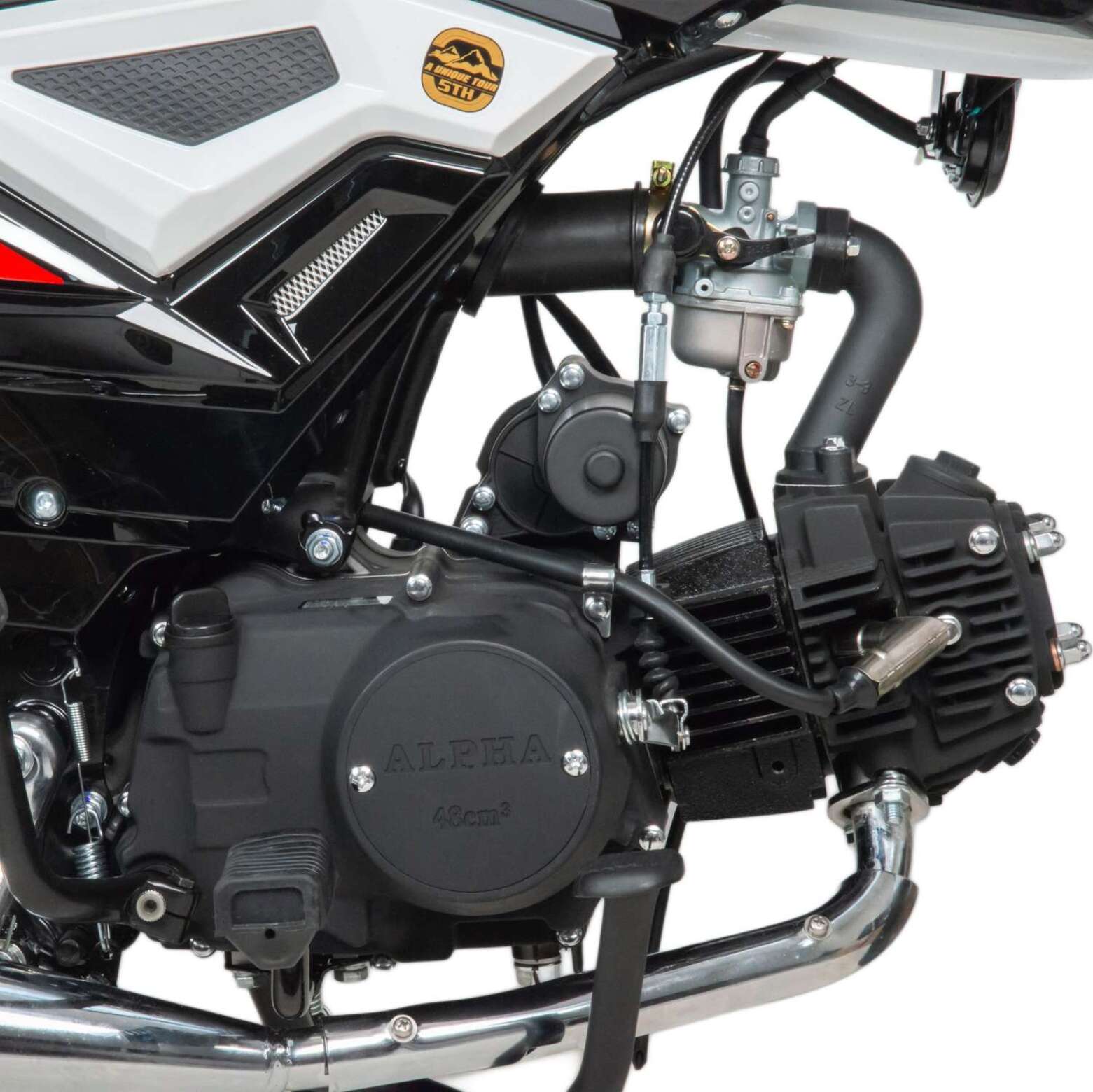 Двигатель имеет возможность легкого запуска с кнопки на руле, так как имеет электростартер, а при необходимости можно воспользоваться кикстартером.