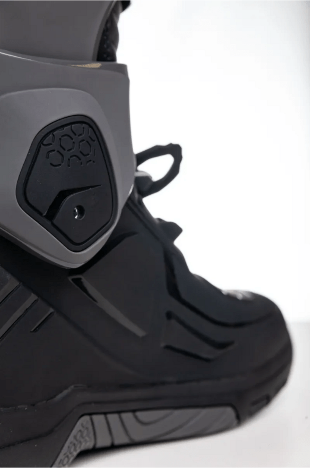:Описание продукта::Это многофункциональные внедорожные мотоциклетные ботинки с продуманной системой защиты, которая позволяет легко справляться с растяжениями и компрессионными травмами. Они обеспечивают бесстрашную езду независимо от дорожных условий, а их продуманный дизайн гарантирует безопасность и удовольствие от езды. : ::Структура продукта: : ::• Защитная конструкция из ТПУ, охватывающая большеберцовую кость, обеспечивает поглощение ударов на 360 , повышая защитные возможности щитка для голени. :::• Влагоотводящая и дышащая подкладка обеспечивает сухость и комфорт ног в течение длительного времени. :::• Соответствует стандарту CE (EN 13634:2017) для защитной обуви для мотоциклистов, что обеспечивает надёжную защиту во время поездок. :::• Пятка и голеностопная часть обуви имеют эластичную складчатую конструкцию, обеспечивающую свободу движений и удобную посадку без сдавливания. :::• Четырёхступенчатая быстросъёмная пряжка для удобства ношения и плотного прилегания к ноге. :::• Композитная система управления сцеплением с поверхностью обеспечивает надежное сцепление, позволяя без труда преодолевать сложные участки местности и справляться с погодными условиями. : ::Многонаправленная защита TPU::Защита суставов::Сертифицированный CE::Регулируемая пряжка::Удобно и уютно::Дизайн с отворотом на верхней части::Предотвращает чрезмерное сгибание::Резиновая подошва::Встроенный стальной сердечник для усиленной поддержки, износостойкости и противоскользящих свойств::Удобная подкладка::Протектор с логотипом спереди на голени::Усиленная прокладка::Система стабилизации голеностопного сустава::Стабилизирует и поддерживает стопу: