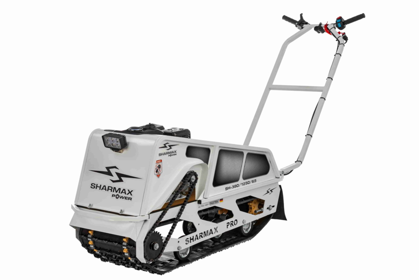 Мотобуксировщик SNOWBEAR S380 1250 HP8 MAXIMUM настоящий помощник на охоте и рыбалке, решит множество задач в сельскохозяйственной деятельности. Идеальное сочетание цены и качества.Гусеница мотобуксировщиков “Sharmax” шириной 380 мм, адаптирована для малогабаритных мотобуксировщиков длиной до 1450 мм. Обладает повышенной стойкостью к износу, а специальная форма протектора дает отличное сцепление с поверхностью, при этом сохраняя уверенную маневренность мотобуксировщика..
