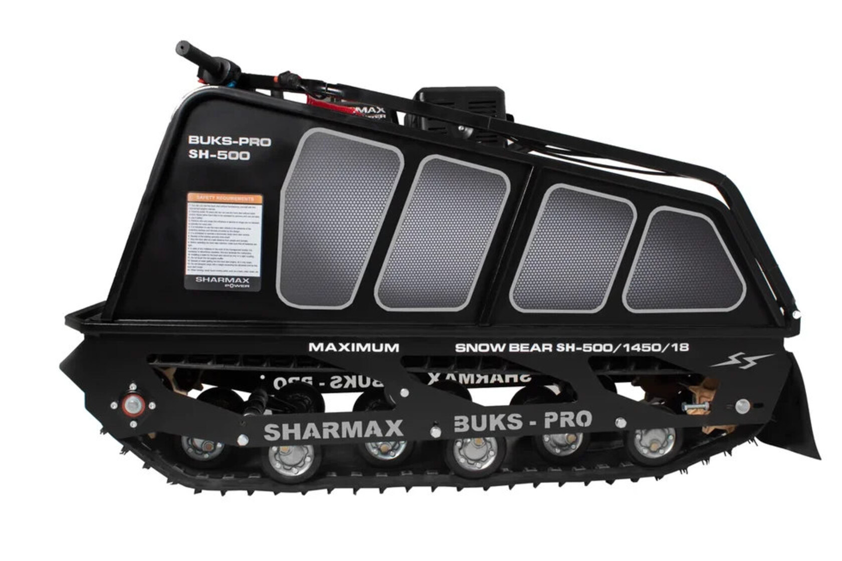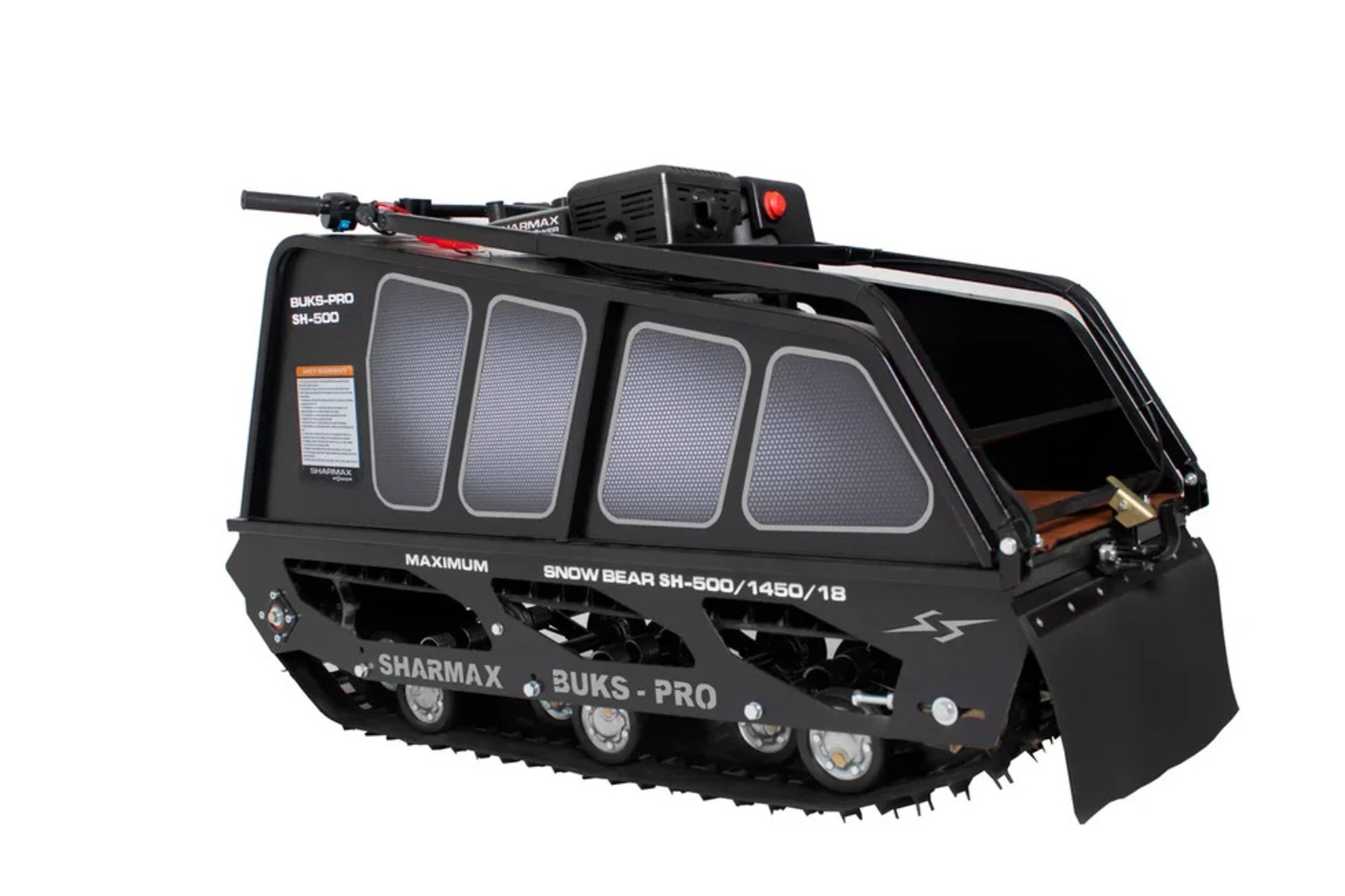 Мотобуксировщик SNOWBEAR SER500 1450 HP18 MAXIMUM настоящий помощник на охоте и рыбалке, решит множество задач в сельскохозяйственной деятельности. Идеальное сочетание цены и качества.Гусеница мотобуксировщиков “Sharmax” шириной 500 мм является надежной и универсальной. Обладает повышенной стойкостью к износу, а специальная форма протектора дает отличное сцепление с поверхностью, при этом сохраняя уверенную маневренность мотобуксировщика..