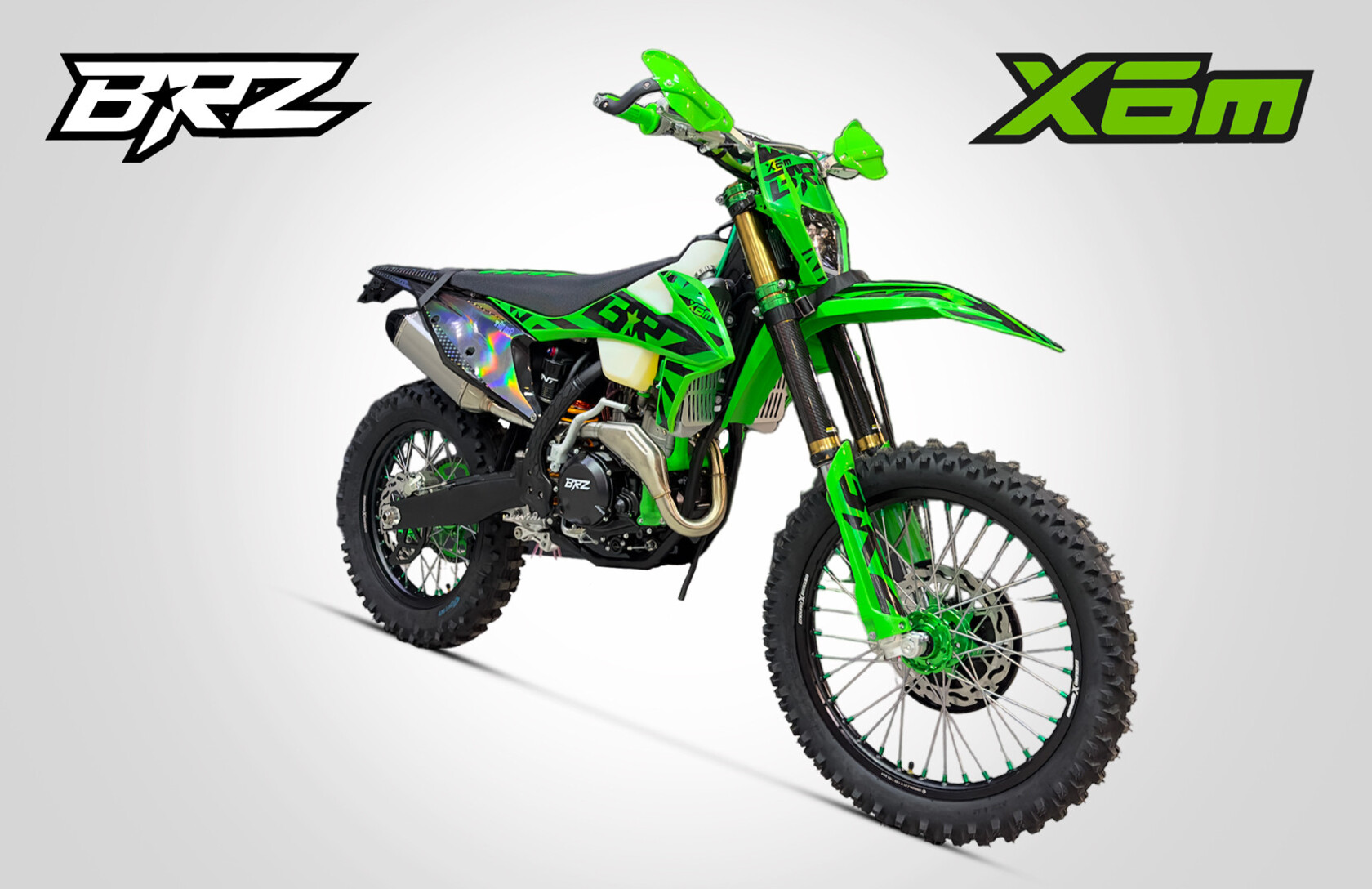 BRZ X6m – спортивный снаряд для опытных райдеров. Его основное назначение – соревнования по кантир кроссу. Также он без труда может ехать в дисциплине хард эндуро и мотокросс. Мощный байк на топовом шасси – все что нужно для победы!Двигатель