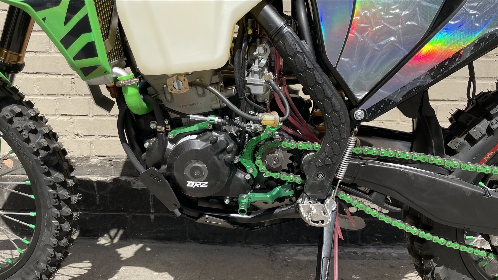 Комплектация Руль IGP twinwall 28мм алюминиевый, короткоходная ручка газа NIBBI, ручки IGP "неломайки", Алюминиевые фрезерованные траверсы CNC. Цепь 520. Алюминиевые подножки водителя и лапки КПП,Алюминиевая защита картера,защита тормозного диска,защита маятника,защита рук,боковая защита рамы,алюминиевая ведомая звезда CNC