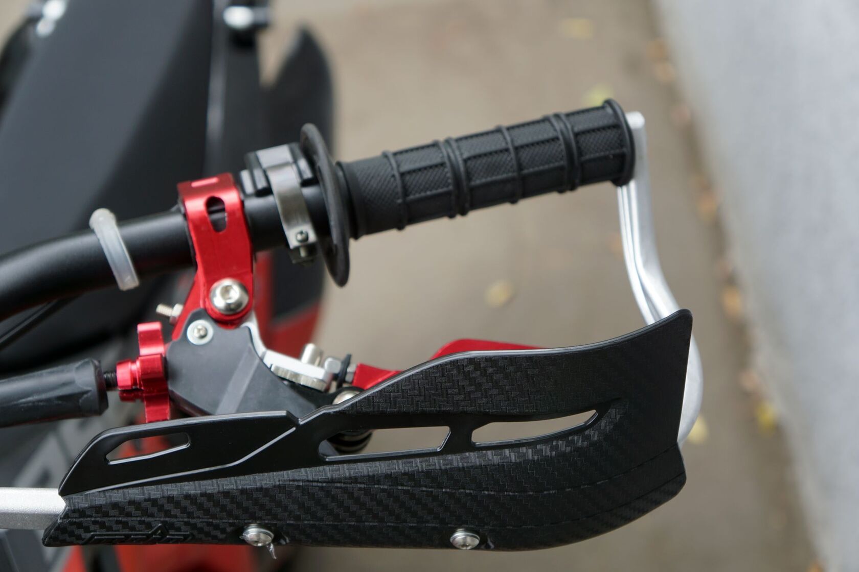 Комплектация На мотоцикле установлены: усиленные легкосплавные колёсные диски MOJO, усиленная цепь, датчик моточасов, усиленные траверсы, складные СNC рычаги тормоза и сцепления, защита коллектора. Мощная гидравлическая тормозная система HSК Racing остановит байк в любых условиях.