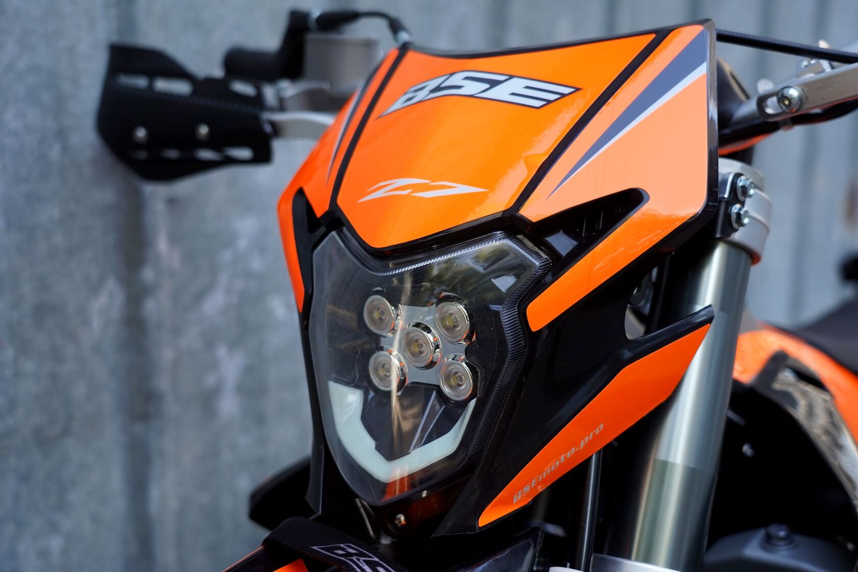 BSE Z7 – полноразмерный мощный эндуро мотоцикл с богатыми низами. Хотите прочный, мощный мотоцикл с жидкостным охлаждением на крепкой стальной раме? Планируете покорять новые внедорожные высоты и хотите начать принимать участие в эндуро гонках на серьезном уровне? BSE Z7 – идеальный выбор для покорения мира эндуро! Идеально сбалансированный, устойчивый, мощный эндуро мотоцикл на прочнейшей усиленной стальной раме. Сердце Z7 – мощный, эластичный и надежный 300 кубовый Zongshen ZS с водяным охлаждением. Отличный показатели крутящего момента на “низах” и “середине”. Система подачи топлива – спортивный карбюратор NIBBI RACING PWK 34. Z7 в заводской комплектации готов к покорению серьезного бездорожья благодаря полностью регулируемой подвески MOJO Racing c большими ходами, литым рычагам задней прогрессии, прямоточному выхлопу и “злой” внедорожной резине. Z7 идеально сбалансирован для эндуро, угол наклона вилки рассчитан специально для лёгкого преодоления высоких преград, подъёмов и барьеров. На мотоцикле установлены: прочнейший алюминиевый подрамник, усиленные легкосплавные колёсные диски, усиленная цепь, защита рук, датчик моточасов, прочные анодированные CNC ступицы, защита помпы и коллектора. Мощная гидравлическая тормозная система HSК Racing остановит байк в любых условиях. На BSE Z7 также можно с комфортном отправиться в продолжительное путешествие благодаря удобному сиденью, широкому спортивному рулю и наличию электростартера. Благодаря яркой LED фара головного света можно кататься в ночное время.
