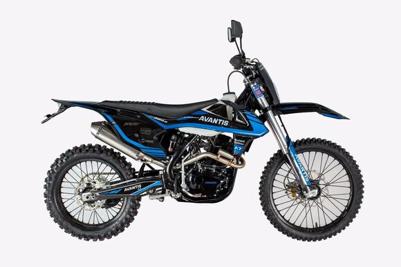 Мотоцикл Avantis A7 NEW (PR250/172FMM-5) KKE— 250-кубовый мотоцикл для взрослых водителей и подростков от 16 лет. Универсальная модель, рассчитанная на перемещение по бездорожью и в городском трафике. Благодаря наличию ПТС, байк можно поставить на учёт в ГИБДД и кататься без ограничений. Оснащен легендарным надёжным 172-й мотором: 1 цилиндр, 4 такта, воздушное охлаждение. Система подачи топлива — карбюраторная, поэтому мотоцикл прост в обслуживании и ремонте. Запуск возможен с помощью электростартера и кикстартера. 21-сильный мотор готов резво тянуть байк по грязи, ухабам и выдавать неплохую скорость на ровной дороге.Ещё одно преимущество этой модели в том, что она подходит для высоких водителей. Дюймаж колёс у большинства моделей 21/18, а высота по седлу целых 90 см, что оптимально для водителей ростом 180-190 см.Коробка передач здесь установлена механическая 5-ступенчатая стандартная. 1 ступень вниз, затем нейтраль, остальные ступени вверх. Тормоза дисковые гидравлические спереди и сзади.Отдельно стоит отметить подвески. Здесь установлены классические системы: передняя телескопическая вилка перевёрнутого типа и задний маятник с моноамортизатором. Обе подвески имеют возможность регулирования сжатия и отбоя. Поэтому мотоцикл можно настроить под условия конкретной трассы или под параметры водителя.По комплектации: имеется полный набор светотехники (фара головного света, стоп-сигналы, поворотники), зеркала заднего вида.