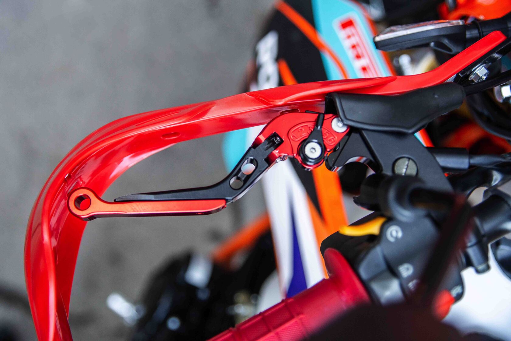 Алюминиевый глушитель, руль переменного сечения, усиленная защита рук.