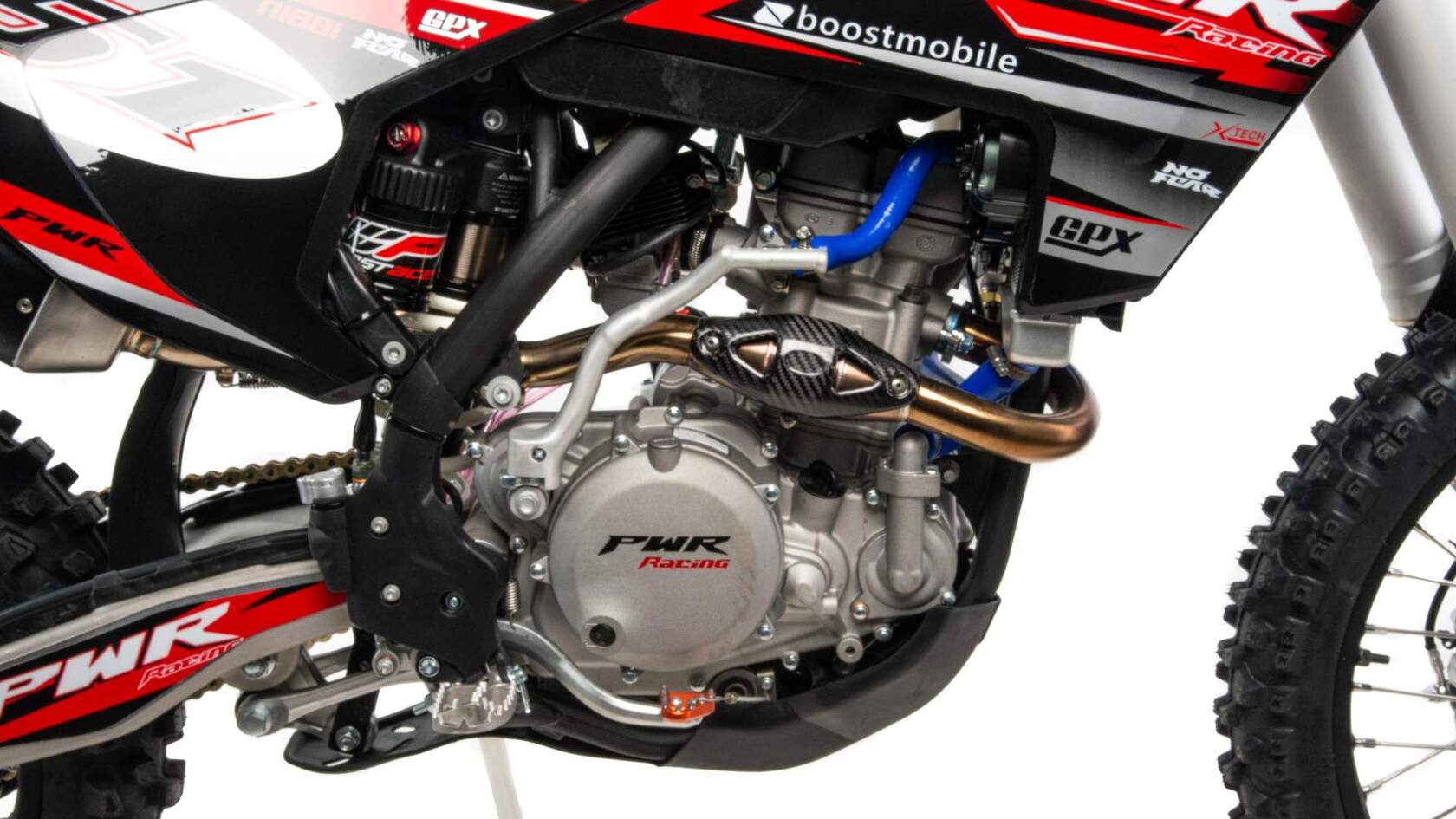 PWR FS300 NC - флагманская модель с кубатурой 300 куб.см. позволяет любому стать участником мотокросса и получить массу впечатлений.300 кубовый двигатель мощностью 34 л.с. с двумя радиаторами водяного охлаждения и вентилятором, для усиленного потока охлаждения, а так же с 4 клапанами ZS 182 MN и производительным карбюратором NIBBI N34 дают мотоциклу отличный разгон и скорость на прямых.Полностью настраиваемая подвеска FASTACE, которая обладает большим ходом и плавной работой для преодоления всех неровностей кроссовой трассы при сохранении ваших сил.Прочный облегченный маятник из алюминиевого сплава с большим сопротивление к нагрузкам на скручивание.Двойной алюминиевый руль переменного сечения 22/28 с низким подъёмом и с подушкой IGP.Это полноценный кроссовый мотоцикл, который является одним из лучших в кроссовой линейке мотоциклов от компании PWR, преимущества которого могут оценить как профессиональные гонщики, так и все ценители гонок по бездорожью. Уникальная комбинация легкого веса, впечатляющей мощи и исключительной управляемости. Модель обладает бойцовским характером, отличными эксплуатационными и динамическими характеристиками.