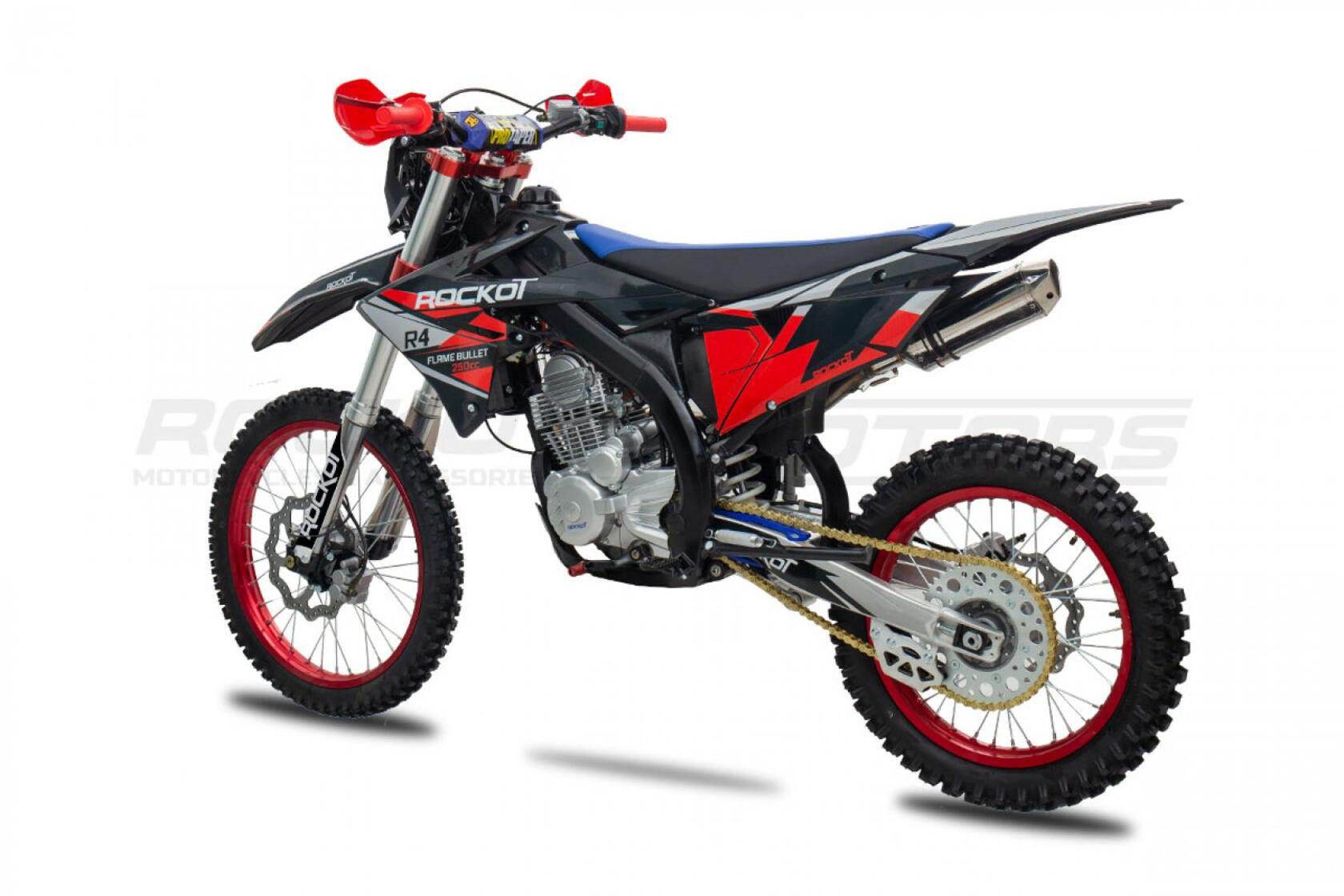 Мотоцикл ROCKOT R4-250 - полноразмерный эндуро мотоцикл. Он специально создан для райдеров, которые уже выросли из питбайка и хотят раздвинуть свои пределы. Он подойдет и начинающим эндуристам с ростом от 170 см. ROCKOT R4-250 идеально себя чувствует в лесных прохватах с преодолением различных препятствий благодаря небольшому весу, тяговитому двигателю и большим колесам 21/18. Мотоцикл максимально упрощен для большей надежности. Из электрики он снабжен лишь светодиодной фарой электростартером Пу сути в нем просто нечему ломаться, можно смело ездить в лесные мото походы на 40 - 200 км. Инженеры Rockot учли все ошибки конкурентов и снабдили мотоцикл качественными подвесками и алюминиевыми ободами. Был переработан узел верхнего крепления двигателя к раме, избавивший от повышенных вибраций. Ведомую звезду закрепили на 6 потайных болтов. Ну и не стали экономить на карбюраторе - в базе установлен NIBBI PE 28. Подведя итог можно смело заявить что R4 - идеальный выбор для тех, кто хочет купить бюджетный эндуро мотоцикл!У нас Вы можете купить этот мотоцикл с бесплатной доставкой по РФ. Также его можно приобрести в рассрочку или в кредит.