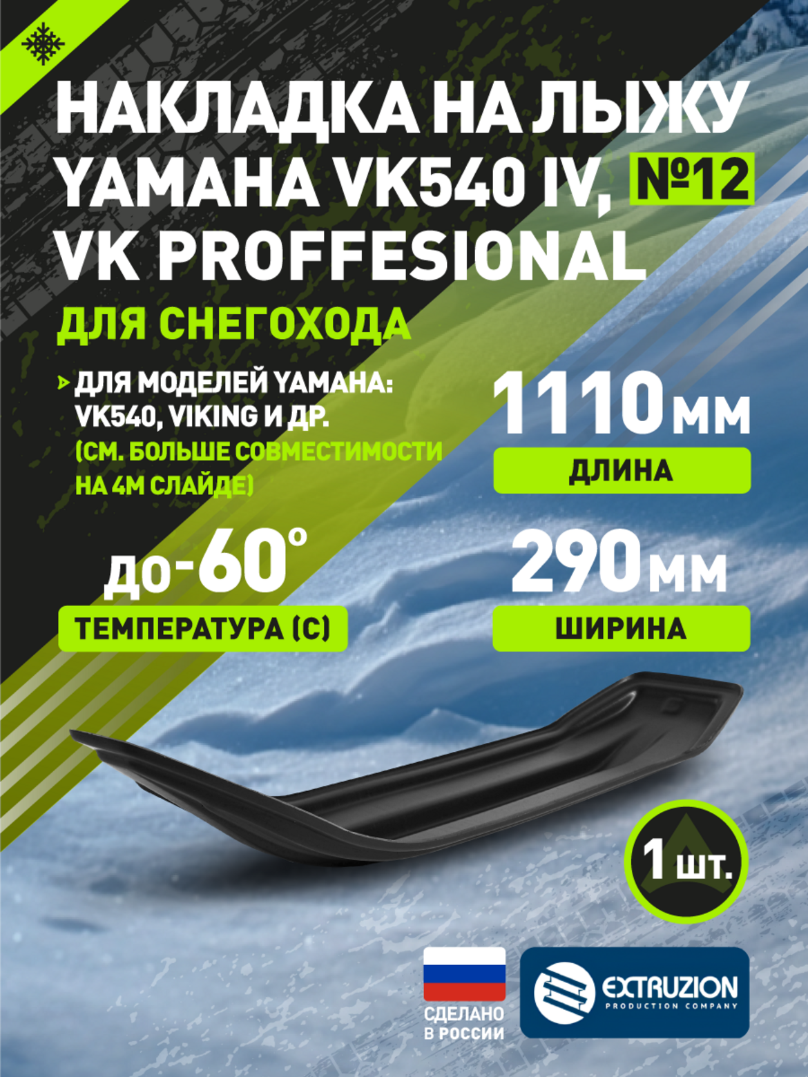 Главная ... Накладки на лыжи Накладка на лыжу №12 для снегохода Yamaha VK540 IV, VK PROFFESIONAL 1110*290*6 (1шт)