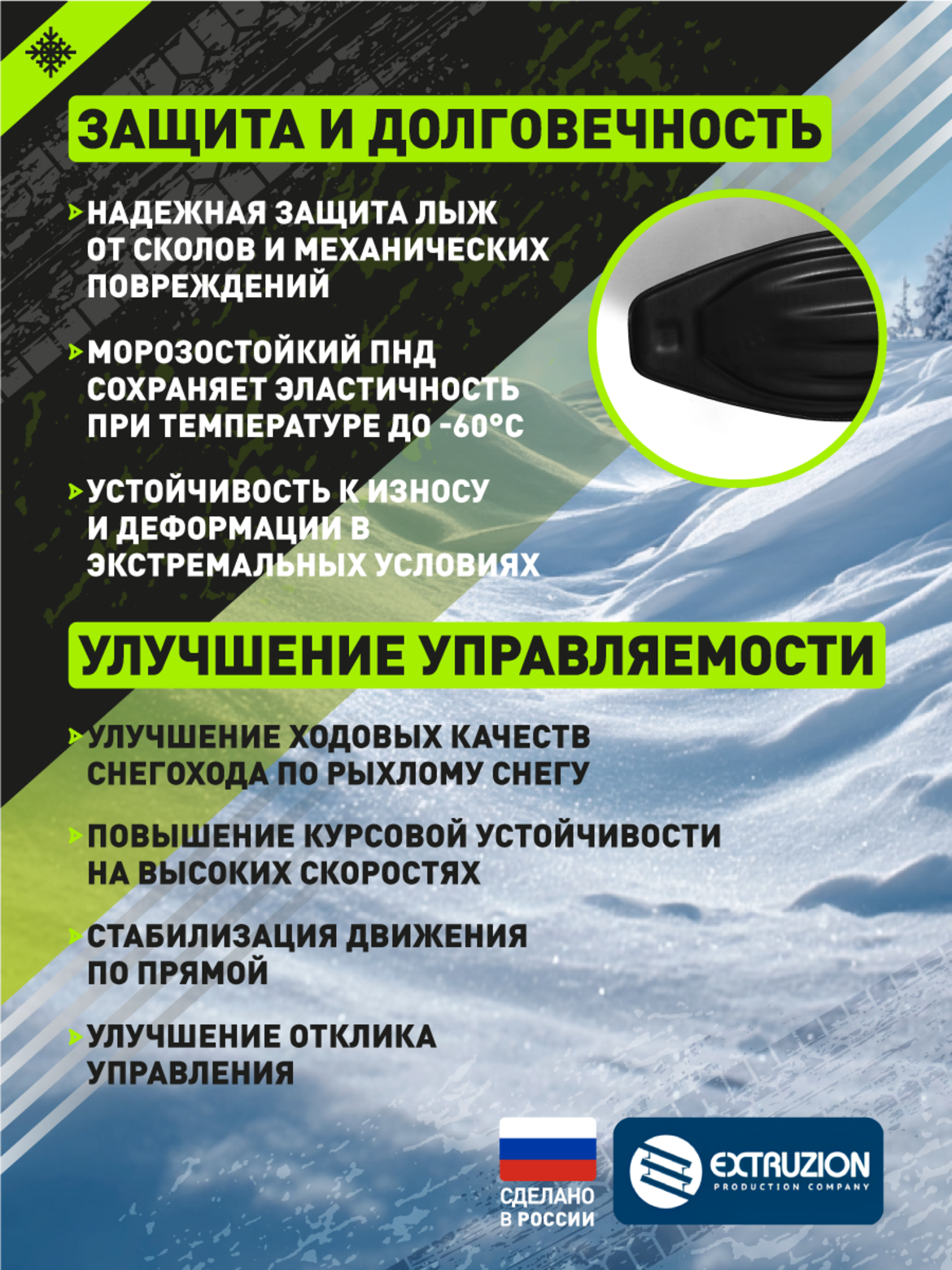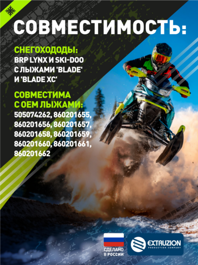 • Специализированная накладка на лыжи для снегоходов BRP с лыжами модели Blade. Разработана для повышения проходимости и защиты стандартных лыж от износа и повреждений. Обеспечивает улучшение ходовых качеств и повышенную плавучесть в глубоком снегу.