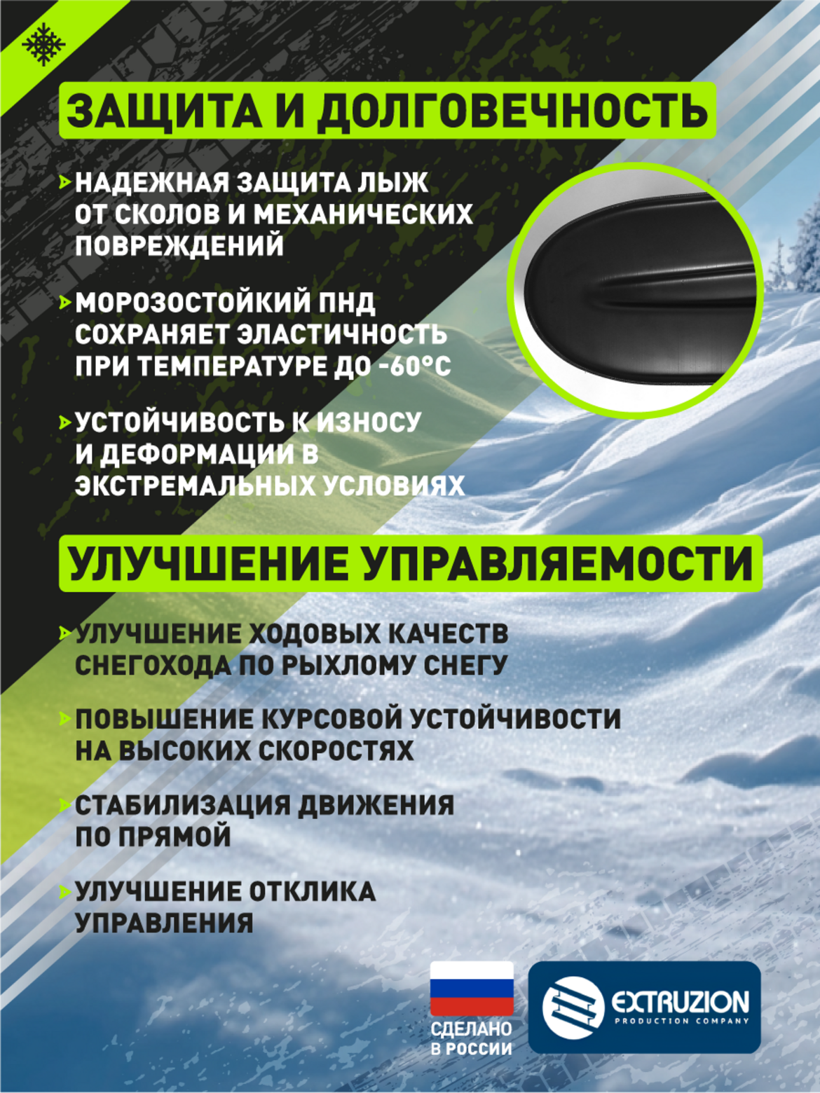• • Уменьшение износа оригинальных лыж и элементов подвески