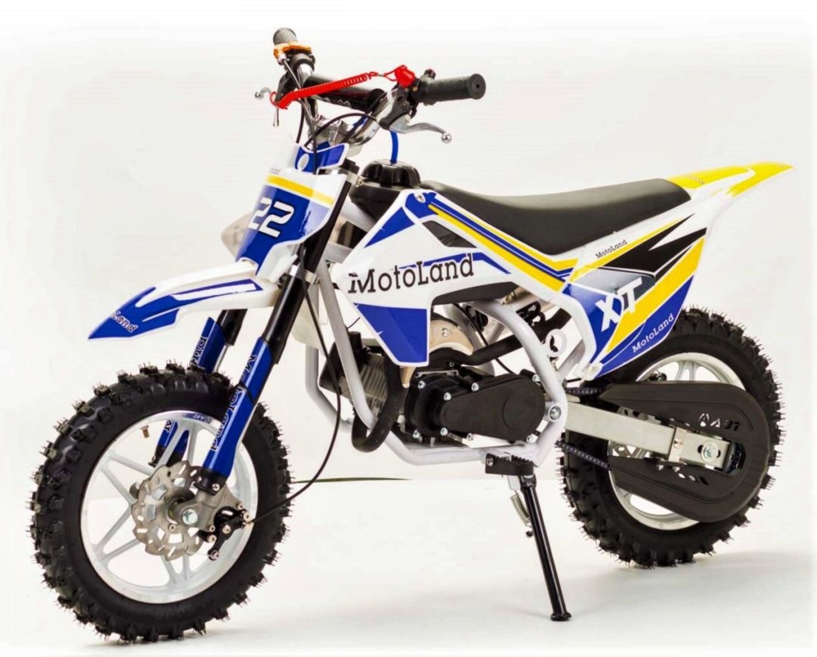 Питбайк MOTOLAND XT50 - новинка в линейке питбайков Motoland 2019 года! Благодаря своим небольшим размерам и весу отлично подойдет для начинающих райдеров.Двухтактный двигатель объемом 50 куб.см. мощностью 2,5 л.с. легко справится с весом ребенка и в тоже время не позволит развить опасную скорость.Техника Motoland за последний год зарекомендовала себя как качественная и доступная, мы уверены что и этот мотоцикл будет радовать своего будущего хозяина.У нас Вы можете купить этот питбайк с бесплатной доставкой по РФ и гарантией до года. Также его можно приобрести в рассрочку или в кредит.