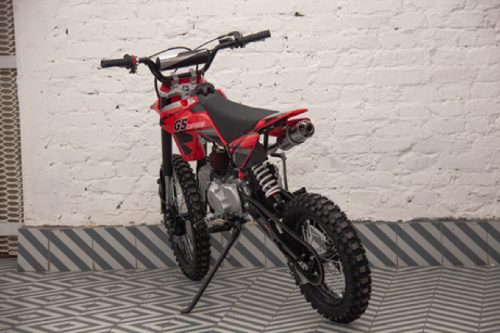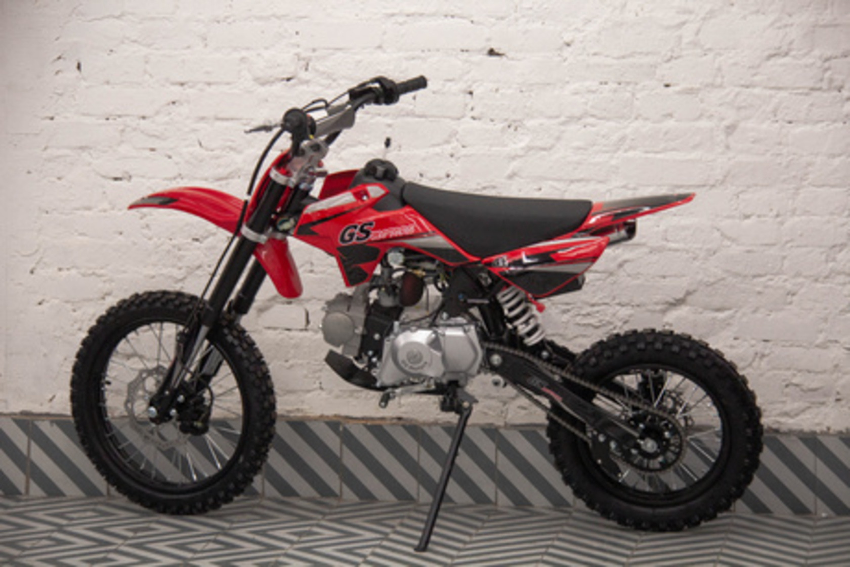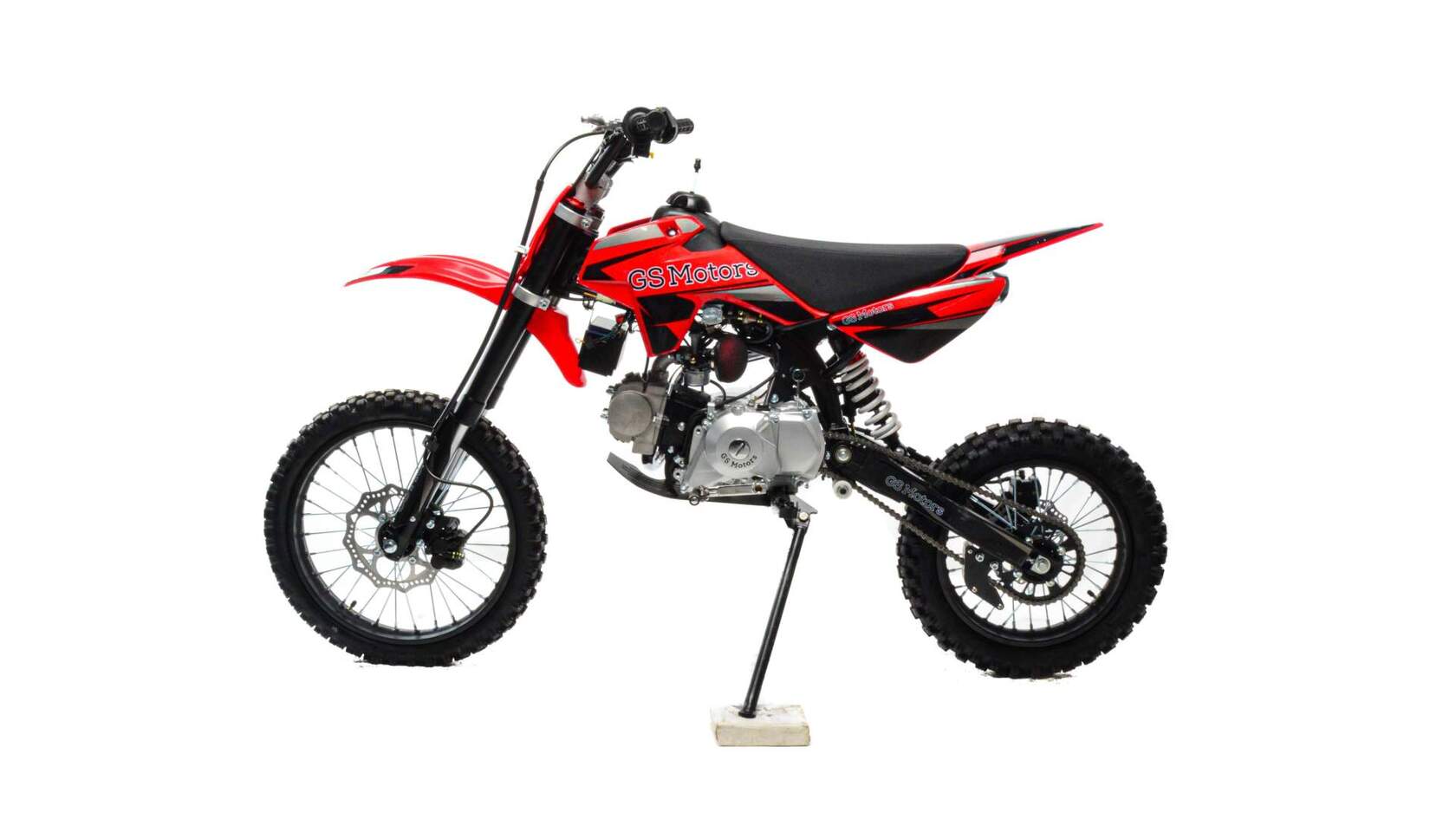 Питбайк MotoLand GS Motors S12 17/14 идеален для поездок по грунтовым дорогам и бездорожью. Хорошо чувствует себя на мягком и среднем грунте. Питбайк прост в управлении и не требует специального ухода, подойдёт как новичкам, так и любителям мотокросса.Передняя подвеска — телескопическая нерегулируемая вилка перевёрнутого типа, которая отлично подходит для преодоления ям, ухабов и других неровностей плохих дорог или их отсутствия. Задняя подвеска маятниковая с моноамортизатором. Руль 22 мм с высоким подъёмом и перекладиной удобен для мотоциклистов разного роста.Питбайк весит всего 75 кг, выдерживает вес до 90 кг. Оснащён CNC траверсами, рама полудуплексная стальная, мотоцепь качественная. Колёса спицованные, металлические. Размер заднего колеса — 14 дюймов, переднего — 17 дюйм. Тормоза дисковые, передний тормозной суппорт двухпоршневой, задний — однопоршневой.Питбайк оснащён карбюратором JINGKI и одноцилиндровым четырёхтактным двигателем с воздушным охлаждением. Надёжный мотор 1P54FMI мощностью 8 л. с. и объемом 125 см³ разгоняет питбайк до 90 км/ч. Коробка передач механическая, четырёхступенчатая. Система зажигания электронная (CDI). Запуск двигателя - кикстартер.Покрышки с шипами и высоким грунтозацепом идеальны для бездорожья. Мощность мотора и небольшой вес питбайка позволяют ему преодолевать значительные препятствия и непролазную грязь, хорошо заходить в подъёмы.
