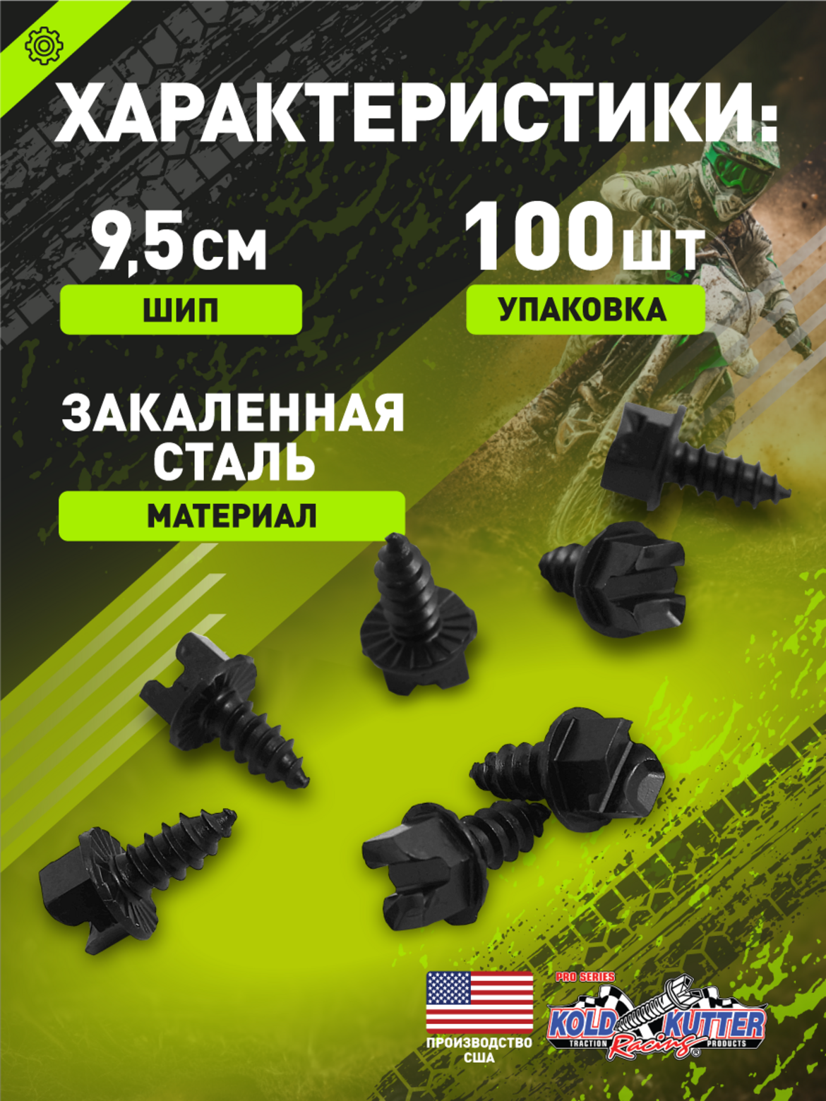 Шип для эндуро мотоцикла вкручивающийся 100 шт.KOLD KUTTER 3/8" (9,5 мм)