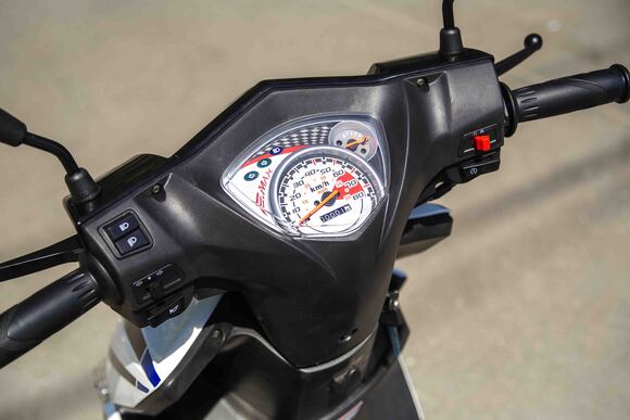 Комплектация За безопасность эксплуатации отвечают дисковый тормоз на переднем колесе и традиционный «барабан» в ступице заднего колеса. Небольшой багажник сзади предоставляет возможность установки кофра для перевозки или хранения мотошлема. Зеркала заднего вида, центральная подножка.