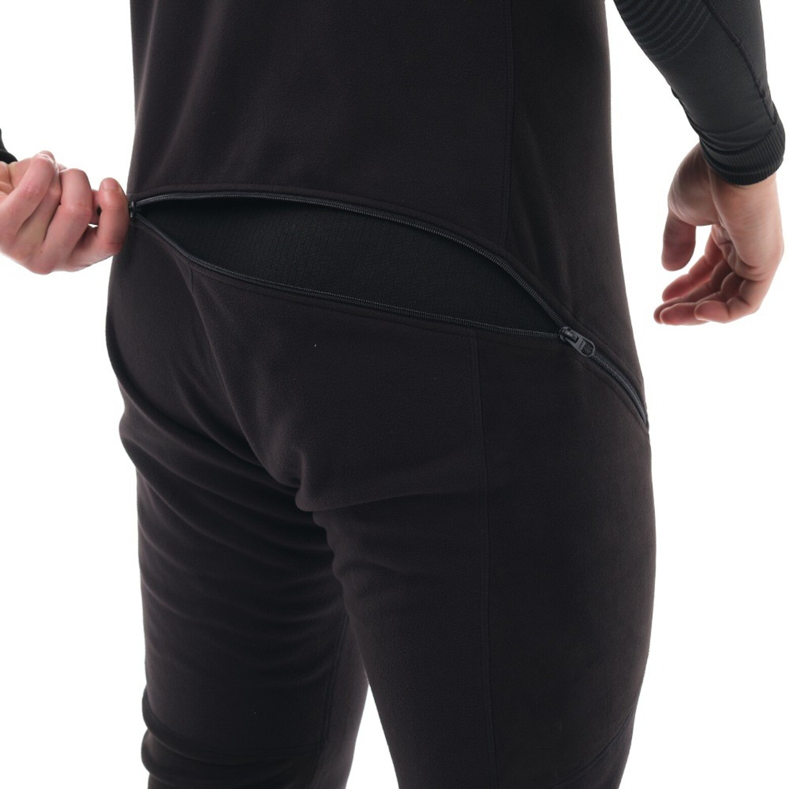 Полукомбинезон утеплённый унисекс (черный)Черный полукомбинезон из флиса и виндстоппера – разновидность термобелья, обеспечивает повышенную теплоизоляцию в области груди, спины, коленей и паха. Используется как "второй слой": надевается на тонкое термо под штаны или комбинезон. Эта простая вещь сделает спорт и активный отдых зимой значительно более комфортным: легкий и теплый полукомбинезон по достоинству оценят те, кто передвигается на технике (снегоход, сноубайк, квадроцикл), катается на сноуборде, занимается зимней охотой или рыбалкой. В качестве утепляющего слоя пригодится в любой холодный период года: весной и осенью можно носить полукомбинезон под вейдерсами и непромокаемым мембранным костюмом.Сшит из двух тканей: дышащий виндстоппер (плотность 350 г/м²) и эластичный флис (плотность 185 г/м²). Состав тканей: 100% полиэстер. Материалы обладают прекрасными теплоизоляционными свойствами, надежно защищая от холода. Не вызывают раздражения и аллергических реакций, что особенно важно для людей с чувствительной кожей.Функциональные характеристики:Комбинация 2 тканей, гармонично дополняющих друг другаПомогает не замерзнуть в суровых погодных условиях, в том числе на ветреных участкахОтводит влагу к верхнему слою: тело остается сухим при интенсивных физических нагрузкахСкроен анатомически, хорошо садится по фигуре, не сковывает движенийБлагодаря мягкости и хорошей растяжимости не давит, не натирает кожуДлинная центральная двухзамковая молния открывается сверху и снизу, что удобно при надевании и облегчает мужской туалетДвухзамковая молния в нижней части спины («бомболюк») незаменима в особых случаях при длительном нахождении в экипировкеБыстро сохнет, не линяет, устойчив к износу, долго не теряет свой первоначальный видМодель унисекс, подойдет как мужчинам, так и женщинам.Температурный режим: от 0 до -30 С.Сделано в России