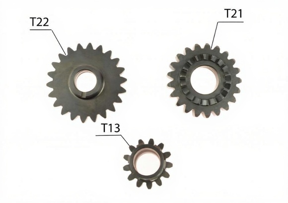 • Комплект из трёх шестерён для ремонта наиболее нагруженных и подверженных износу элементов привода двигателя. Предназначен для замены первичной и вторичной шестерни коленвала, а также шестерни кикстартера.