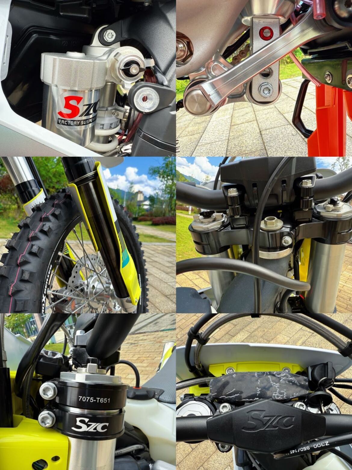 Hengjian S6 Z300 — это 2-тактный эндуро-мотоцикл 2025 года выпуска, позиционируемый как аналог моделей Husqvarna TE300 и KTM EXC300. Он сочетает доступную цену с техническими характеристиками, близкими к топовым европейским аналогам.Высокая мощность. Мощность двигателя — 57 л. с., максимальная мощность — 42,6 кВт.Максимальная скорость — 150 км/ч.Водяное охлаждение.Гидравлическое сцепление для идеального контроля.Увеличенный бензобак для долгих поездок — 9 л.Регулируемая передняя подвеска (сжатие/отбой/преднатяг пружины).Регулируемый моноамортизатор (сжатие/отбой).Копия двигателя Husqvarna TE300 с прогрессией.Передняя подвеска — SZC открытый картридж, версия PRO. Длина — 940 мм, диаметр пера — 48 мм. Есть регулировки сжатия и отбоя.Задняя подвеска — амортизатор SZC OPTIMA, регулируемый (сжатие/отбой). Длина — 480 мм.Передняя подвеска — телескопическая, перевёрнутого типа.Задняя подвеска — моноамортизатор регулируемый SZC XP, PDS (сжатие/отбой).