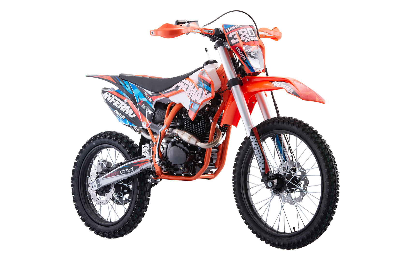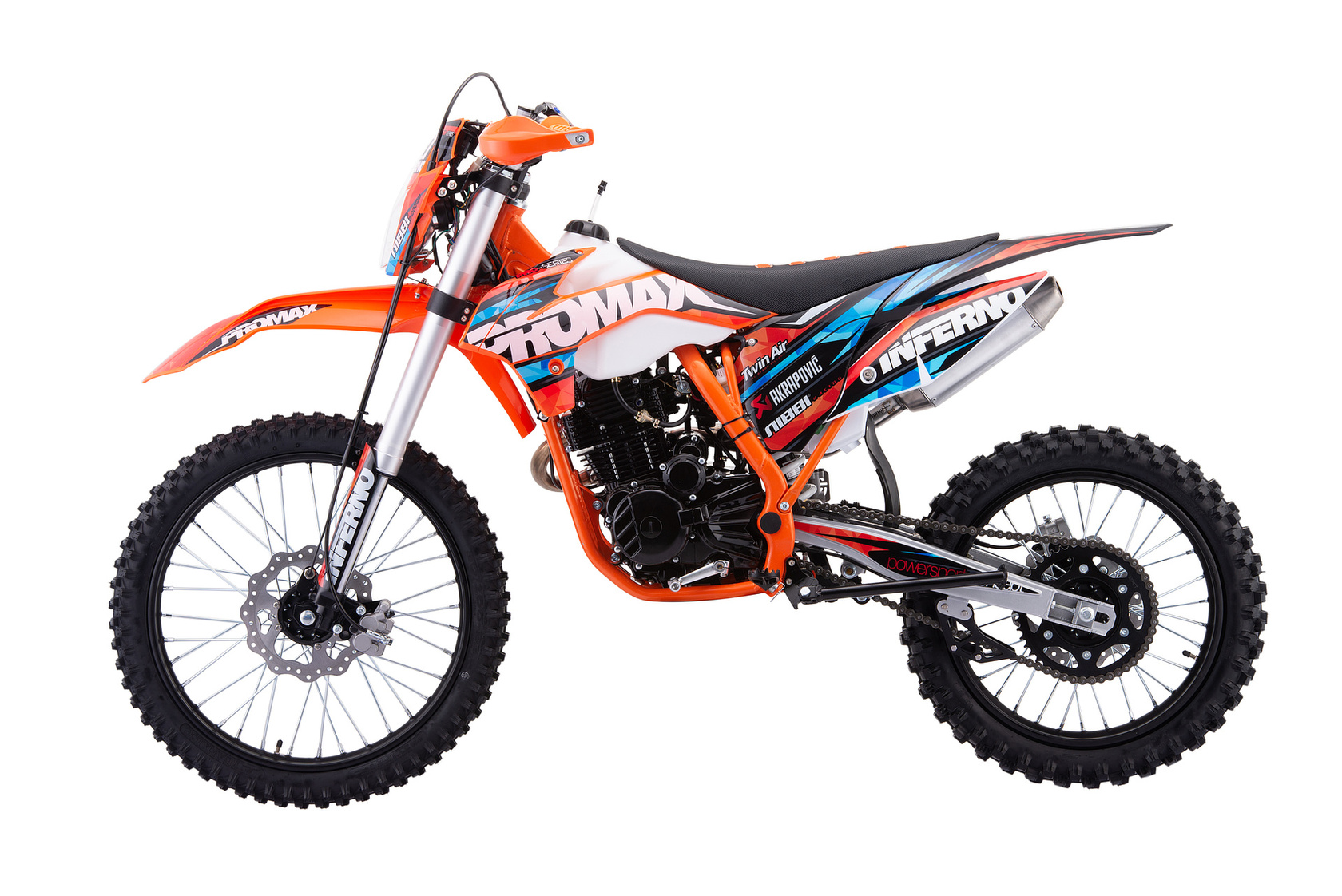 Главная ... Техника Кроссовый мотоцикл PROMAX INFERNO 380 (4 valves, 6 gears) оранжево - черный-синий