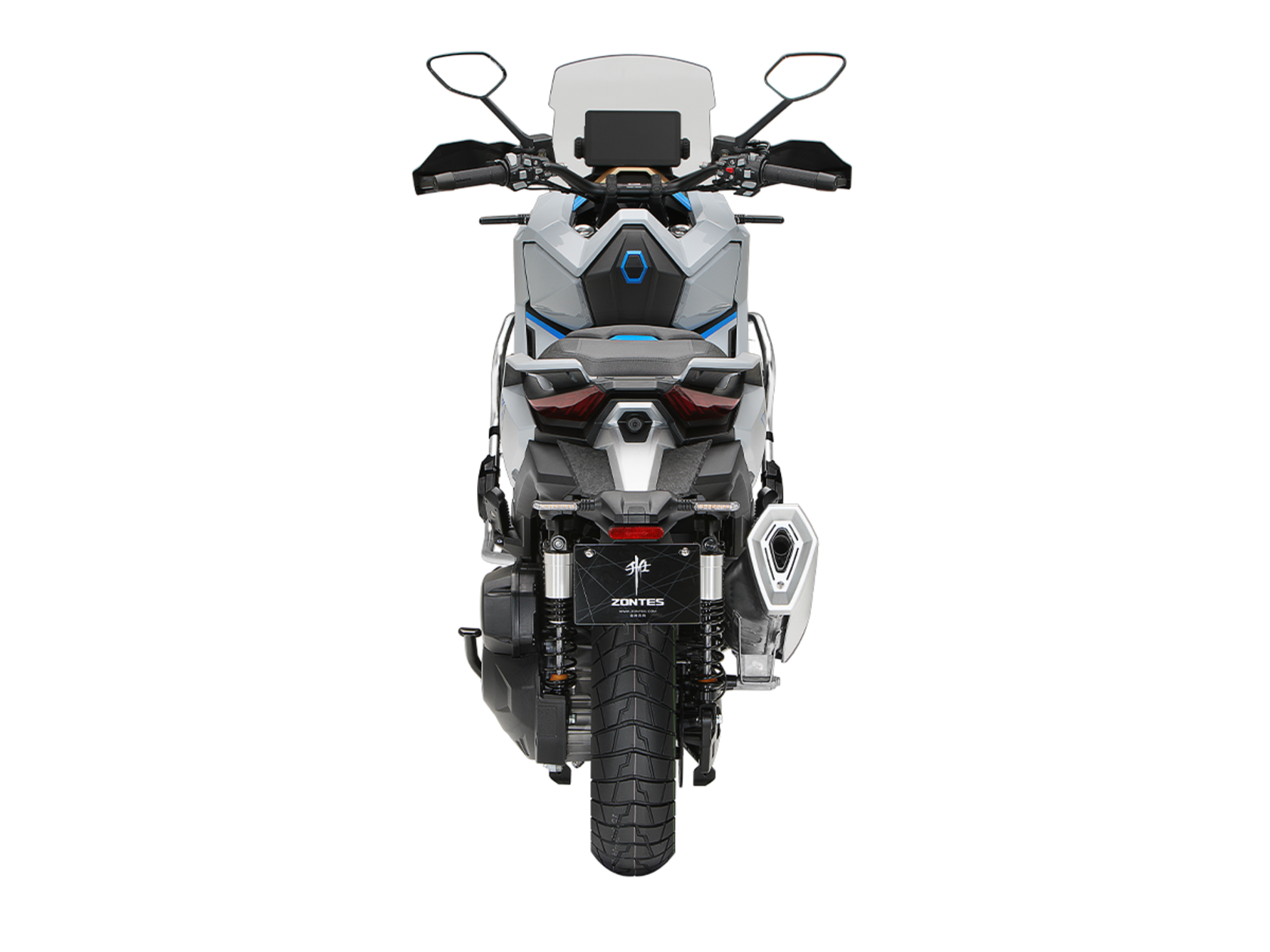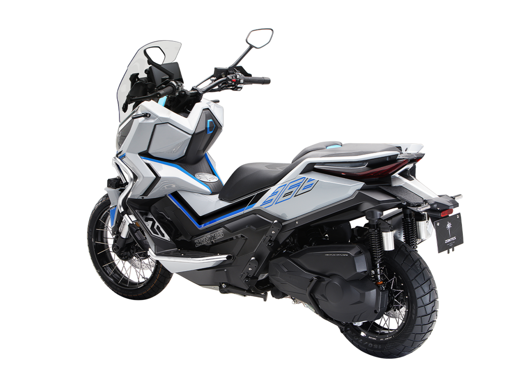 Скутер ZONTES ZT368-G – максискутер двойного назначения, готовый пронестись по улицам города за его пределы и отправиться по грунтовым тропам прокладывать свой маршрут туда, куда вам потребуется. Регулируемая подвеска с перевёрнутой телескопической вилкой спереди обеспечит отличную управляемость и устойчивость в любых условиях.Силовая установка представлена одноцилиндровым 4-тактным двигателем. Двигатель имеет объём 368 см³ и обеспечивает мощность в 38,8 л.с. Оснащён инжектором BOSCH, системой жидкостного охлаждения и вариатором. Запуск двигателя осуществляется с помощью бесключевого доступа.Ёмкость топливного бака 17,5 литра.Колёса имеют диаметр 17 дюймов спереди и 14 дюймов сзади. Для подвески спереди используется телескопическая вилка перевёрнутого типа, а сзади установлены 2 гидравлических амортизатора. Гидравлические дисковые тормоза произведены компанией J.JUAN, входящей в холдинг BREMBO. Мотоцикл также оснащён 2-канальной ABS-системой, противобуксовочной системой TCS System и датчиками давления в шинах.ZT350-G оборудован яркой LED-фарой, мультимедийной приборной панелью с TFT-дисплеем, имеются 2 USB-порта.Габариты скутера 2230х925х1290 мм. Колёсная база 1560 мм. Высота по седлу 795 мм. Вес 198 кг.