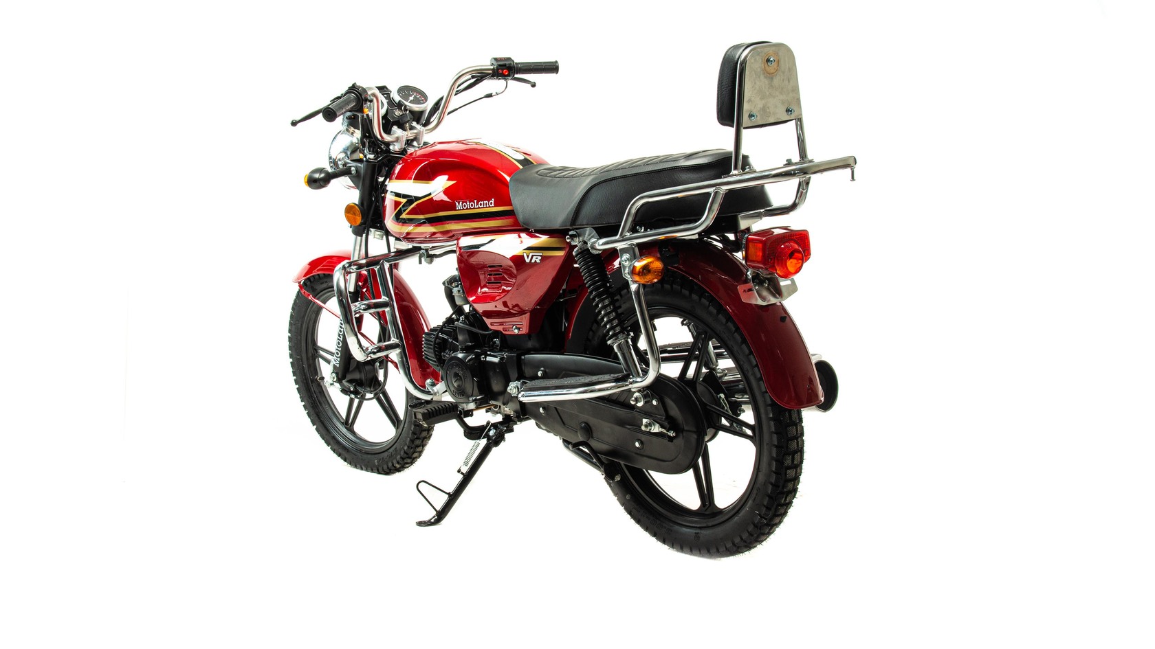 Обновленная версия мопеда альфа от мотолэнда. В мопеде Motoland Alpha VR11 удлиненная база. Это делает посадку более удобной даже для высоких людей, выемки на баке очень удобны для коленей. Для удобства пассажира присутствует спинка.Увеличенный объем бензобака , его длина стала на 10 см длиннее ранних моделей. Мотоцикл поставляется на 17 дюймовых легкосплавных дисках с шинами увеличенного размера . Спереди стоит шина 2,75 (обычно 2,5) сзади шина 3,00 (обычно 2,75). Внешний вид Motoland VR 11 стал более солидным, мопед уже выглядит как взрослый мотоцикл.Мопед с завода поставляется с 50 кубовой поршневой, в подарок мы предоставляем поршневую 110сс. При сборке мотоцикла ее нужно установить. Тк коробка передач и карбюратор PZ19 рассчитаны на работу со 110 поршневой (на 50сс поршневой свечу будет заливать).Все маркировки мопеда- рама и двигатель как у 50сс мопеда. (тк он им и является). После замены поршневой внешне никак не видно его кубатуру. У мотоцикла железные крылья, которые заметно крепче пластиковых, однако могут со временем начать ржаветь. Максимальная скорость до 85 км/час. Хорошее качество сборки.