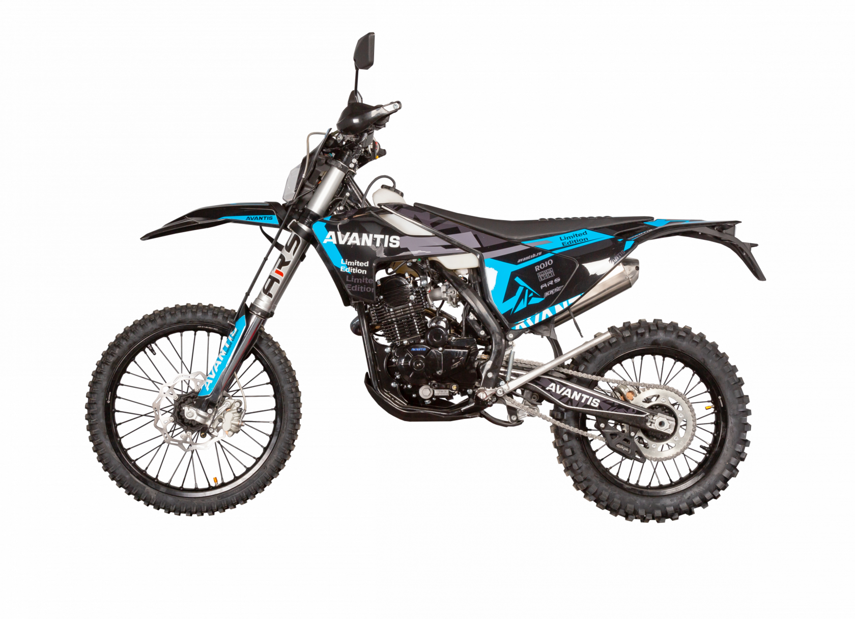 Avantis Enduro 250 EFI Exclusive ARS — одна из главных новинок весны 2022 года. Это мотоцикл, в котором объединены комфорт, производительность и спортивные характеристики. Главным преимуществом модели является универсальность, которая складывается из производительного мотора с инжектором, продуманной геометрии и функционального тюнинга.Этот мотоцикл создан для спорта и эксплуатации в жестких условиях: все задействованные комплектующие имеют топовое качество и являются лучшими в своем классе. Да, это напрямую повлияло на цену, однако каждый потраченный рубль себя полностью оправдает. Это полноразмерный взрослый эндуро с соответствующими габаритами. Высота по седлу составляет 960 мм, поэтому на нем будет комфортно опытным райдерам с ростом выше 170 см — либо тем, кто умеет ловко запрыгивать на сидение с подножки. Это, пожалуй, единственное ограничение модели, так как в остальных аспектах Avantis Enduro 250 EFI Exclusive ARS не предъявляет к владельцу жестких требований: ни по весу, ни по уровню навыков.Несмотря на то, что Avantis Enduro — это спортивная серия соревновательного уровня, новая модель максимально дружелюбна даже к новичкам. Avantis Enduro 250 EFI Exclusive ARS легкий, отлично управляется и ловко маневрирует: как по городскому трафику, так и на бездорожье. Фирменная подвеска ARS без проблем справляется с неровностями рельефа и эффективно отрабатывает даже резкие приземления.База по осям 1500 мм в паре с дорожным просветом в 310 мм позволяет уверенно преодолевать препятствия, будь то высокие камни с валунами на пересеченке либо высокий бордюр в городе.На мотоцикле установлена однокартриджная подвеска ARS. Энергоемкая и длинноходная, она уже зарекомендовала себя на топовых мотоциклах Avantis и была неоднократно проверена на качество в самых жестких условиях.Спереди находится телескопическая вилка-перевертыш: рабочий ход 300 мм, диаметр пера 48 мм, длина пера 940 мм. На штоках с завода установлена пластиковая защита. Задняя подвеска — маятниковая: с моноамортизатором, алюминиевыми рычагами прогрессии на игольчатых подшипниках. Окрашенный маятник, как и во всей серии Enduro, полый и литой, что обеспечивает его солидный ресурс. При необходимости подвеска регулируется на сжатие, отбой и преднатяг пружины.В качестве базы для колес задействованы прочные и легкие обода от Unison, сделанные из алюминия. Покрышки — YangXing с агрессивными шашками и отличным зацепом, с завода укомплектованные буксаторами. Рисунок протектора позволяет уверенно проехать по маршруту практически любого уровня сложности, а ресурса комплекта хватит не на один сезон. Размерность колес наиболее популярная, 21” спереди и 18” сзади.Avantis Enduro 250 EFI Exclusive ARS является первым в России мотоциклом, оснащенным двигателем 172FMM-5 с воздушным охлаждением и инжектором. Такая комбинация позволила добиться уверенного подрыва и хорошей динамики во всем рабочем диапазоне. Кроме того, данное решение существенно снизило расход топлива — как во время интенсивных тренировок на бездорожье, так и во время поездок по городу.С одной стороны, двигатель 172FMM-5 уже задействован на других мотоциклах Avantis: например, им комплектуются модели А6, А7 и новинка А8. Однако наличие инжектора и топовая комплектация делают Avantis Enduro 250 EFI Exclusive ARS неоспоримым победителем в любых сравнениях.Мощность мотоцикла (при замере с коленчатого вала) составляет 25 лошадиных с