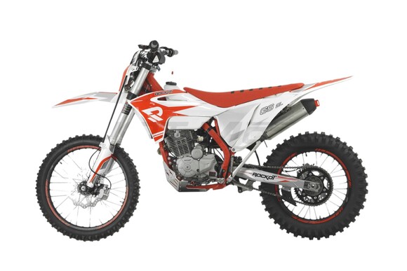 ROCKOT GS 2-L Outlander - полноразмерный эндуро мотоцикл в пластике GASGAS на популярном двигателе 172FMM-5 PR250. Высота по седлу в 920 мм и колесная база 1465 мм обеспечат отличную управляемость и комфортное вождение даже для невысоких райдеров. Подвеска мотоцикла в паре с качественными шинами создают все условия для достижения максимально качественного зацепа с поверхностью трассы.ROCKOT GS 2-L Outlander выполнен в исключительно ярком и запоминающемся дизайне, в расцветке которого преобладают красный, белый и серебристый цвета. Такая расцветка подчеркивает спортивный характер и в то же время визуальную легкость мотоцикла. Облицовочный пластик в стиле GASGAS 21` выделяет мотоциклы серии GS среди других эндуро мотоциклов. Элементы передней и задней подвесок, двигатель, защита двигателя окрашены в серебристый цвет, благодаря чему отлично сочетаются со стильной графикой, нанесенной на пластик байка. Белый топливный бак позволит постоянно контролировать наличие топлива даже во время езды. Рама окрашена в красный цвет и придает мотоциклу более агрессивный, спортивный вид под стать его возможностям. За адреналин и яркие эмоции от поездок отвечает один из самых популярных двигателей - Zonsen (Zongshen) PR250 172FMM-5. Неспроста данный мотор заслужил свое признание среди эндуро сообщества. Это один из самых надежных и проверенных временем двигателей китайского производства. Фактический объем двигателя составляет 249 см³ и двухклапанную систему ГРМ, что в паре с карбюратором PE30 позволяет ему развивать мощность в 21 лошадиную силу. Коробка передач - пятиступенчатая с многодисковым сцеплением в масляной ванне. Крутящий момент в 18 Nm достигается уже при 6500 об/минуту, а его равномерное распределение делает этот мотор идеальным для эндуро. Также для обеспечения наивысшего крутящего момента в диапазоне низких оборотов, ROCKOT GS 2-L Outlander оснащен выхлопной системой с резонатором “PowerBomb”. Балансирный вал значительно снижает вибрации, что делает поездки и тренировки более комфортными.ROCKOT GS 2-L Outlander сконструирован на основе рамы S8, геометрия которой была специально спроектирована для эндуро. Угол наклона вилки сделан таким образом, чтобы придать мотоциклу наилучшую управляемость и маневренность. Особенность рамы заключается в использовании труб восьми- и шестигранного сечения. Применение хром-молибденового сплава стали сделало раму мотоцикла более легкой и невероятно прочной.Рама и двигатель надежно закрыты от ударов толстой алюминиевой защитой, а боковая часть рамы - прочными пластиковыми накладками. Спереди установлена телескопическая вилка перевернутого типа длиной 910 мм. Толщина пера составляет 41 мм, что является оптимальным решением для полноразмерного эндуро мотоцикла, способного выступать в эндуро соревнованиях класса “Бронза”.Задняя подвеска состоит из регулируемого (сжатие/отбой/преднатяг) моноамортизатора, длиной 465 мм, и рычажной системы прогрессии, благодаря которой рабочий ход задней подвески значительно увеличивается.ROCKOT GS 2-L Outlander имеет колеса стандартного для эндуро размера - 21/18 дюймов. С завода мотоцикл поставляется на фирменных колесных дисках KKE, отличающихся своей высокой прочностью. Спереди установлена шина ROCKOT RT-909, являющаяся аналогом Mitas C-19, а сзади ROCKOT RT-754. Шины имеют мягкий компаунд medium soft и обеспечивают отличное сцепление с трассой как на мягком, та