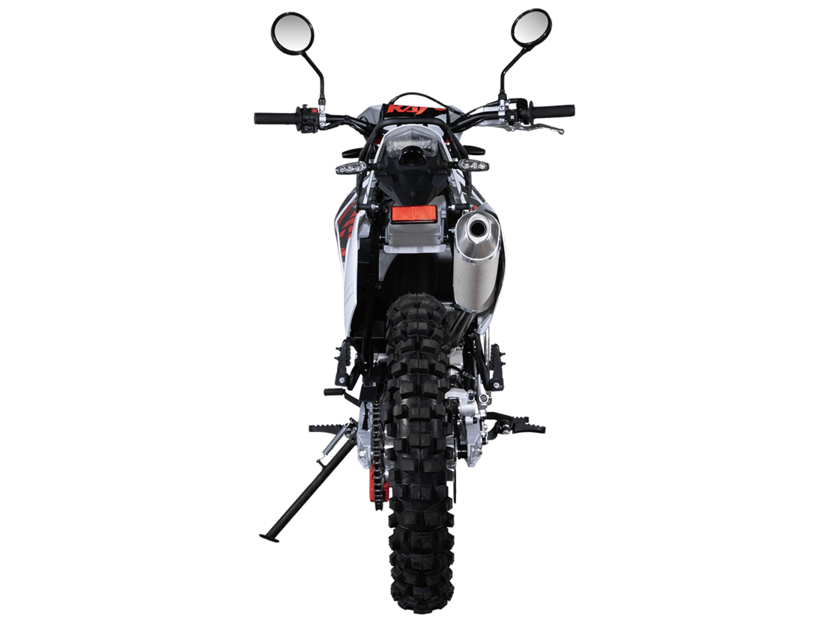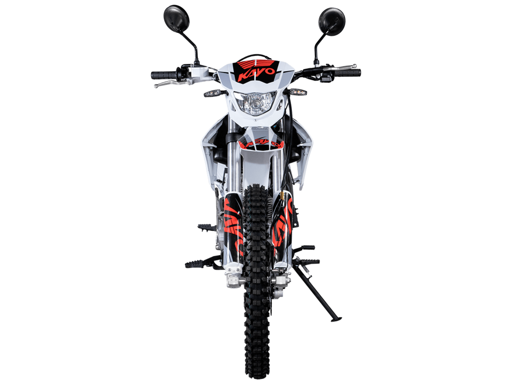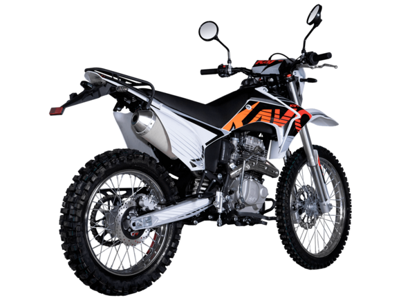 Мотоцикл KAYO T1-L 250 Enduro 21/18 2025 ПТС – облегчённая модель надёжного и производительного эндуро, уже готовая к покорению внедорожных трасс.Оснащён 4-тактным двигателем объёмом 223 см³ с верхним распредвалом и воздушным типом охлаждения. Способен развивать мощность в 16,32 л.с. при 8500 об/мин, а максимальный крутящий момент 17,5 Нм достигается при 6500 об/мин. За подачу топлива отвечает карбюратор PE30. Он обеспечивает топливную экономность и бесперебойную работу двигателя даже в самых жёстких условиях. Соотношение диаметра цилиндра и хода поршня 65,5x62,2. Степень сжатия 9,6:1. Запуск двигателя осуществляется с помощью электростартера или кикстартера. Тип зажигания CDI. Снизу установлена пластиковая защита двигателя.Механическая коробка передач имеет 5 ступеней. Привод цепной. Объём топливного бака 9 литров.На мотоцикл установлены спицованные колёса с алюминиевыми ободами и ступицами. Обуты во внедорожные покрышки YUANXING 80/100-21 и 110/100-18.Длина подвески спереди 830 мм, длина задней подвески 370 мм. Задняя подвеска оснащена прогрессией. Траверсы выполнены из литого алюминия, а прогрессия – из стали. За торможение отвечают дисковые гидравлические тормоза.Прочная рама и маятник выполнены из стали. Мотоцикл имеет ПТС и оснащён всем необходимым для поездок по дорогам общего пользования: галогеновая фара, диодные поворотники, диодный стоп-сигнал, звуковой сигнал, цифровая приборная панель, зеркала заднего вида.Для управления установлен руль переменного сечения 28 мм Fatbar со стандартными рычагами сцепления и тормоза. Имеется платформа для перевозки грузов и дополнительные подножки для поездок с пассажиром.Габариты мотоцикла 2100х810х1180 мм, вес 115 кг. Клиренс 300 мм, колёсная база 1400 мм, высота по седлу 890 мм.