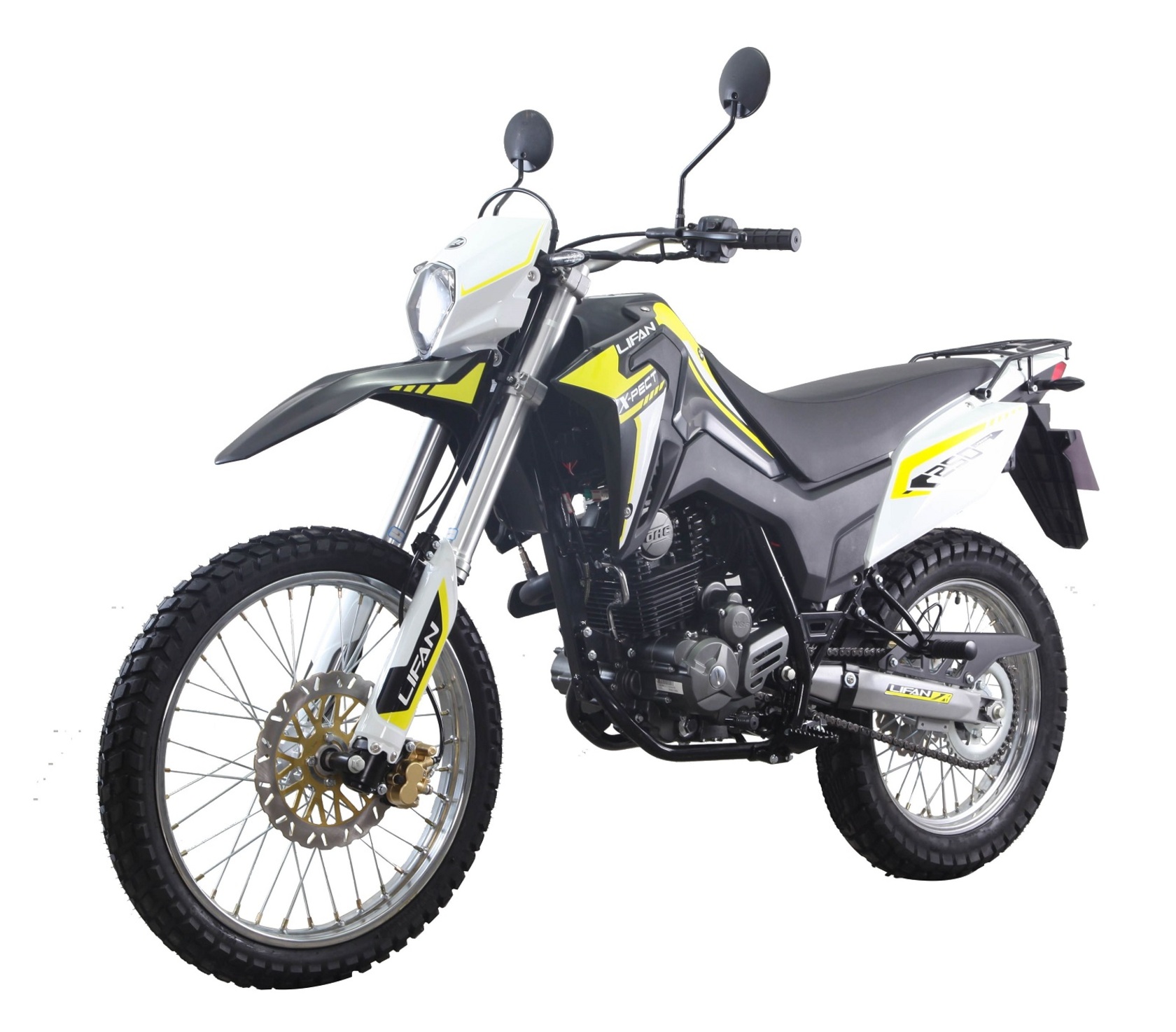 Lifan LF250GY-3 - это эндуро мотоцикл, который сочетает в себе надёжный двигатель, прочную раму и высокую проходимость. Спроектированный для бездорожья и приключений, он предлагает достойную производительность и комфортное управление на любом типе покрытия. Стильный дизайн, простота и надёжность конструкции делают его отличным выбором для любителей активного отдыха и экстремальных поездок.Дорожный просвет 280 мм и отличная проходимость позволяют справляться с различными условиями бездорожья.Двигатель NBS250 – одноцилиндровый, 2-клапанный двигатель с воздушным охлаждением, электрический стартер, 6-ступенчатая коробка передач, максимальная мощность 14.3 кВт (19,5 л.с.) при 8500 об/мин и максимальный крутящий момент 20,5 Нм/ 6500 об/мин после оптимизации конструкции камеры сгорания двигателя и впускного канала.Передняя вилка перевернутого типа диаметром 41 мм с траверсами из алюминиевого сплава, передний ход подвески 224 мм, центральный задний амортизатор, задняя подвеска с ходом 230 мм и высокопрочный рычаг из алюминиевого сплава подходят как для бездорожья, так и для езды в городе.Передние шины диаметром 21 дюйм и задние 18-дюймовые шины толщиной 120 мм.Высококачественные шины для бездорожья, противоскользящие, износостойкие, спортивные, для легкого передвижения по любой дороге.