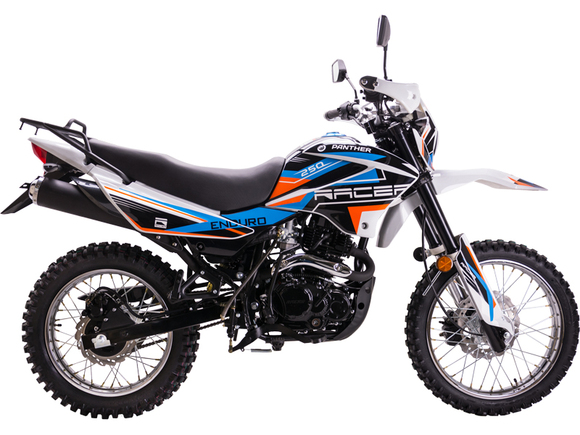 Мотоцикл Racer RC250GY-C2 оснащен мощным четырехтактным двигателем объёмом 224 куб. см. Максимальная мощность составляет 15 л.с., а максимальная скорость при этом около 120 км/ч. Этот мотоцикл идеальный вариант для эксплуатации в условиях проселочных дорог, лесов и полей. В отличие от Panter Lite, дисковые тормоза установлены спереди и сзади.Запуск двигателя может осуществляться как с помощью электростартера, так и с помощью кик-стартера. Охлаждение двигателя – воздушное, расход составляет всего 3 л/100 км. Коробка передач имеет пять скоростей вперед. Объем бака 10 л, этого хватит что бы преодолеть большое расстояние.У нас Вы можете купить этот мотоцикл с бесплатной доставкой по РФ и гарантией до года. Также его можно приобрести в рассрочку или в кредит.