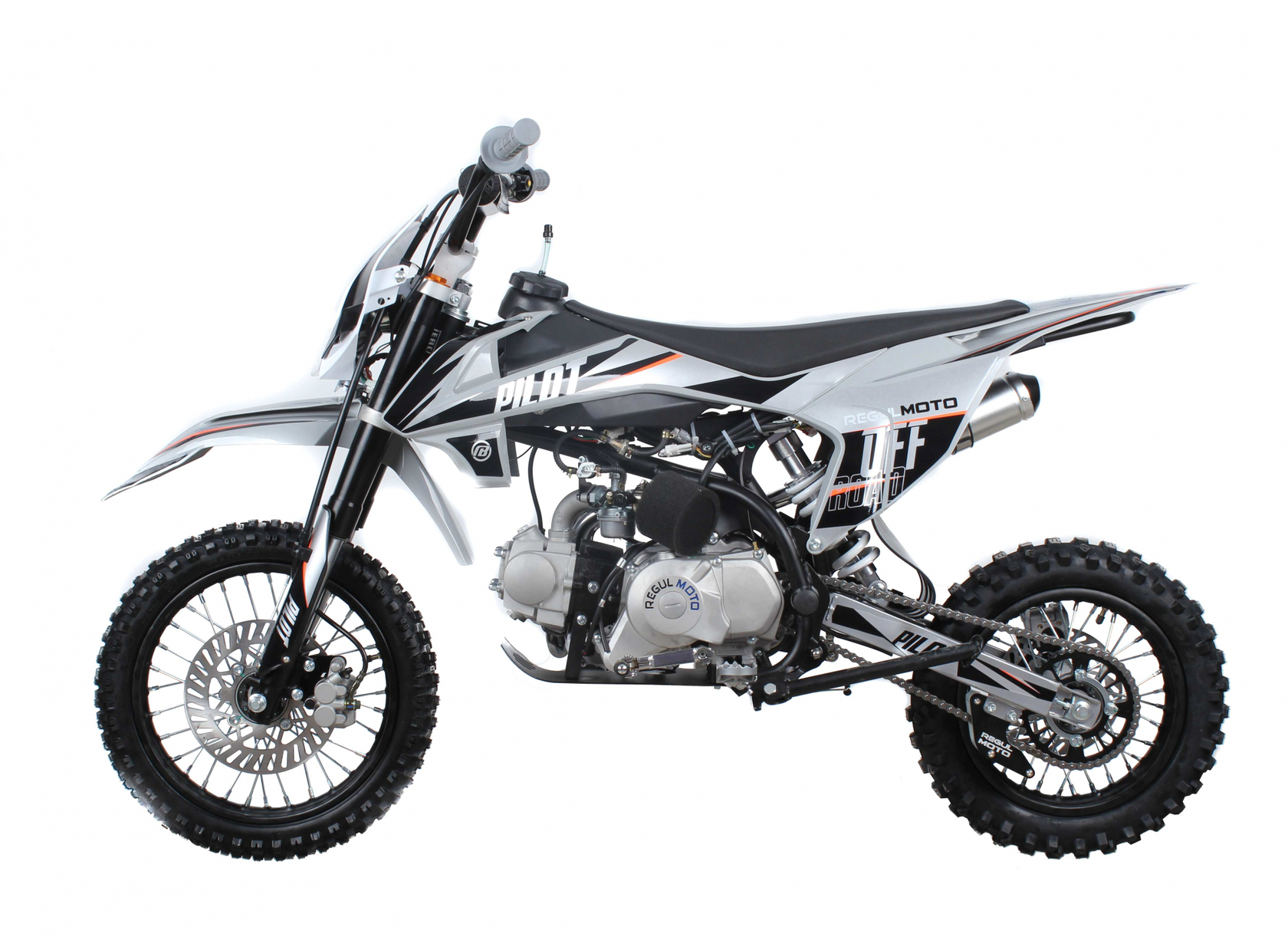 Regulmoto Pilot 110 c электростартером и полуавтоматической коробкой передач – питбайк начального уровня, созданный специалистами Американского мотобренда PitsterPro для юных мотогонщиков.Данная модель представляет линейку мототехники Regulmoto модельного ряда 2021 года, отличается высокой надежностью и простотой в эксплуатации.В прочной и надежной раме питбайка стоит 4х-тактный двигатель YX110 воздушного охлаждения с 4-ступенчатой полуавтоматической трансмиссией.Высокий класс используемых комплектующих обеспечивают необходимый для внедорожной мототехники уровень надёжности и комфорта.Яркая светодиодная фара позволяет использовать питбайк также в тёмное время суток.В 2021 году Regulmoto Pilot получил ряд обновлений – кроме нового дизайна графики, изменения коснулись дизайна пластикового обвеса, подножек, рычагов тормоза, переключения передач и глушителя.Эта модель рассчитана на детей и подростков возрастом от 7 до 15 лет.Наличие полуавтоматической трансмиссии позволяет детям и подросткам с минимальным опытом управления двухколесной мототехникой быстро освоить основы и совершенствовать навыки вождения на бездорожье.