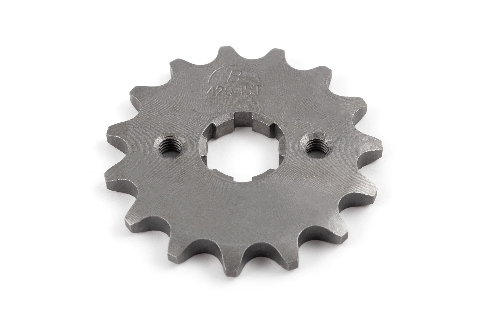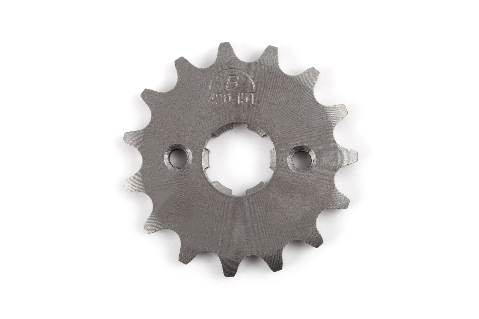 • Ведущая звезда с шагом цепи 420, 15 зубьями и посадочным отверстием 20 мм для эндуро и питбайков. Обеспечивает надежное зацепление с цепью и эффективную передачу мощности на заднее колесо. Прямая установка на шлицевой вал двигателя.