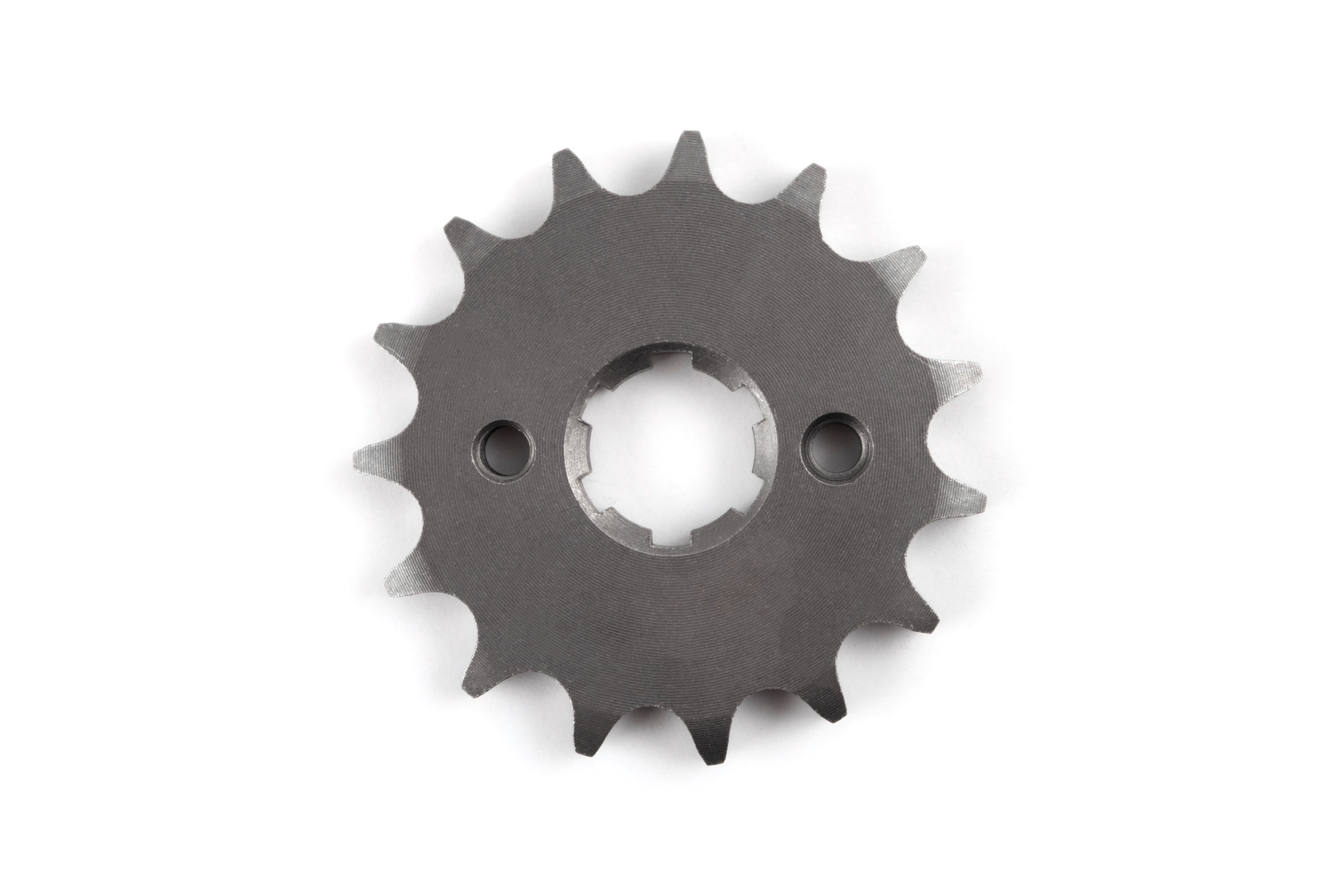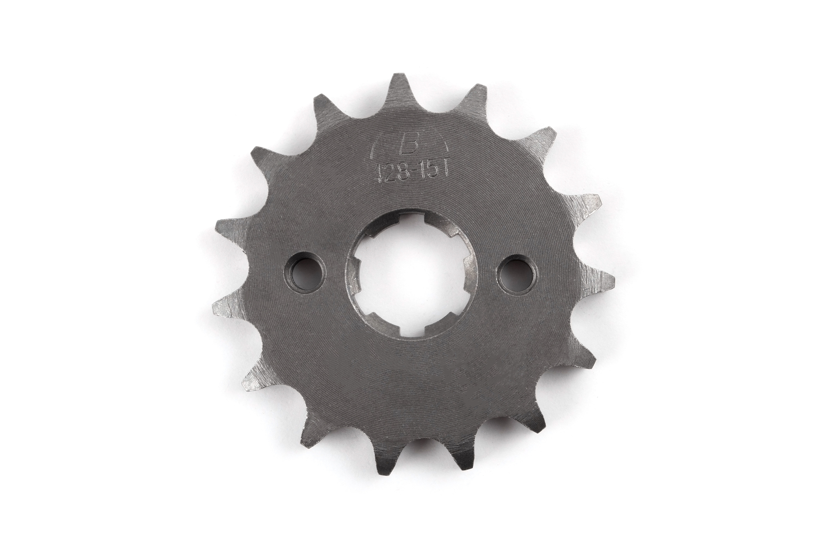 • Ведущая звезда с шагом цепи 428, 15 зубьями и посадочным отверстием 20 мм для эндуро и питбайков. Изготовлена из прочной стали, обеспечивает надежное зацепление с цепью и эффективную передачу мощности на заднее колесо. Прямая установка на шлицевой вал двигателя.