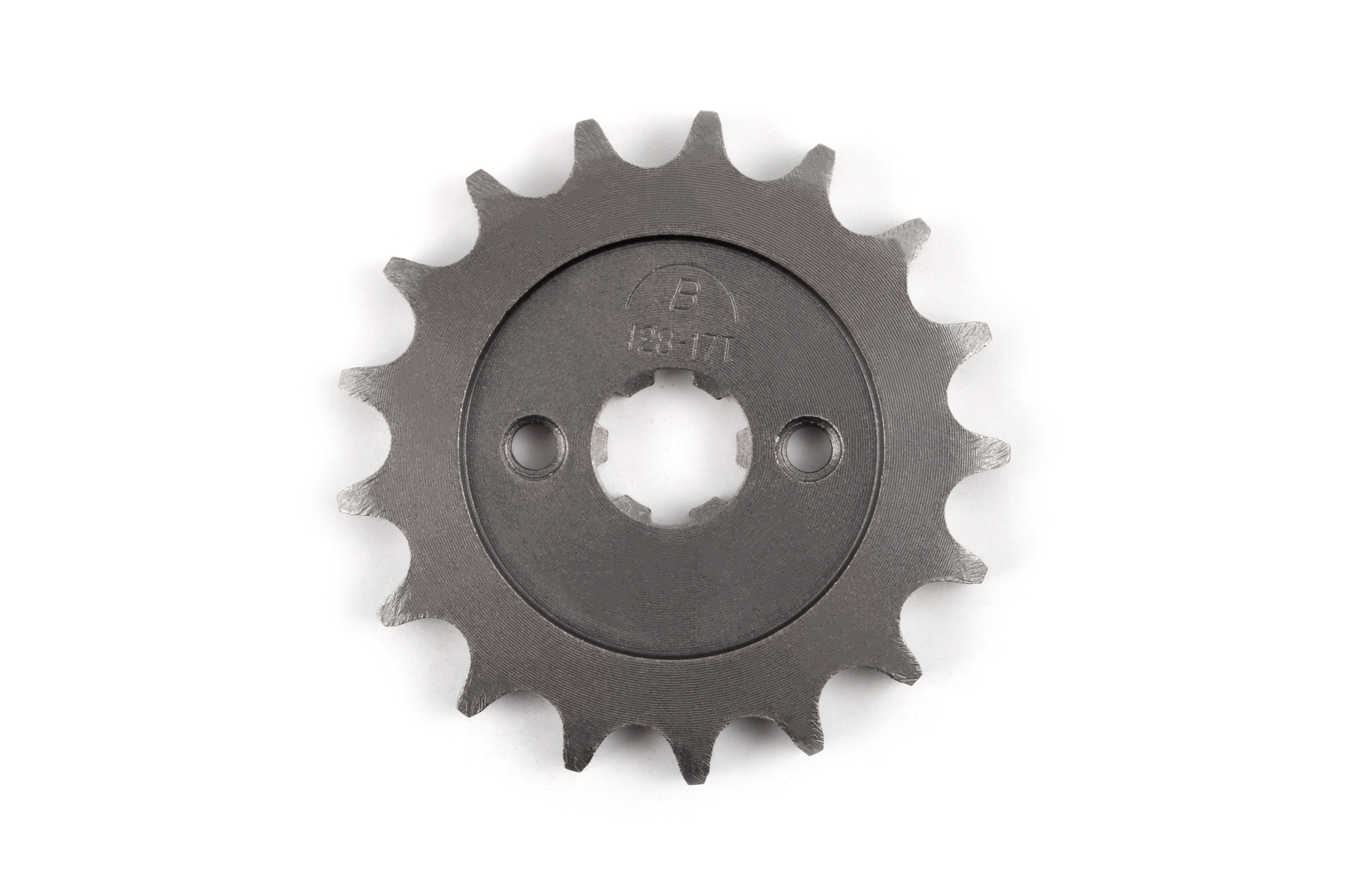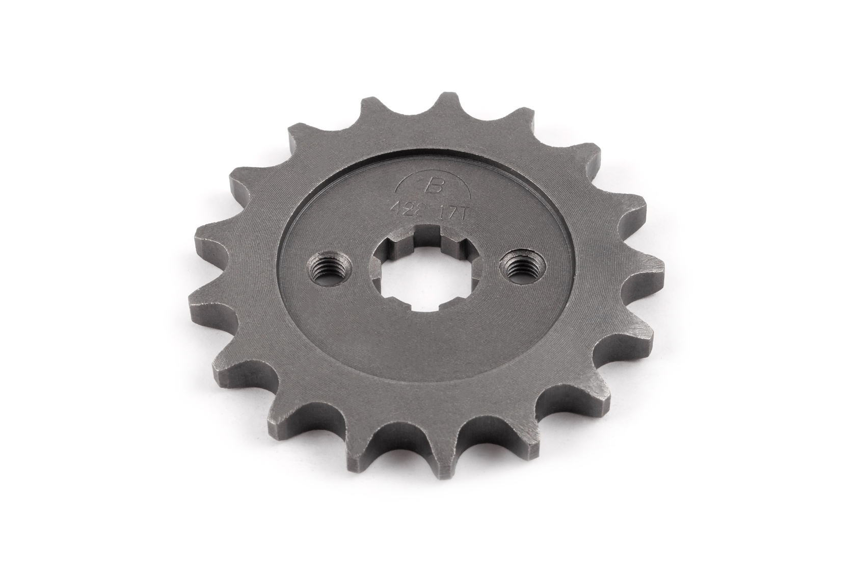 • Ведущая звезда с шагом цепи 428, 17 зубьями и посадочным отверстием 17 мм для питбайков. Обеспечивает надежное зацепление с цепью и эффективную передачу крутящего момента. Оптимальна для достижения повышенной максимальной скорости при сохранении плавности хода.